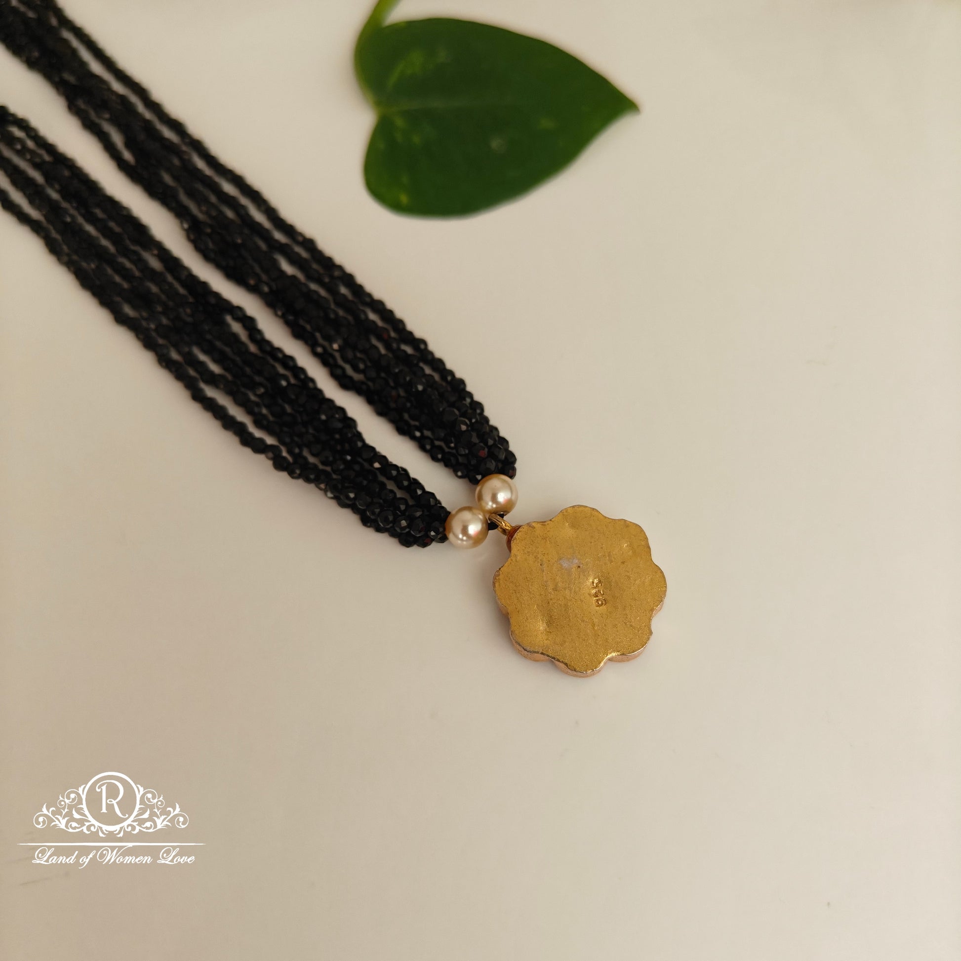 92.5 silver simple and Cute black beads with multi colour kundan locket-RCH964