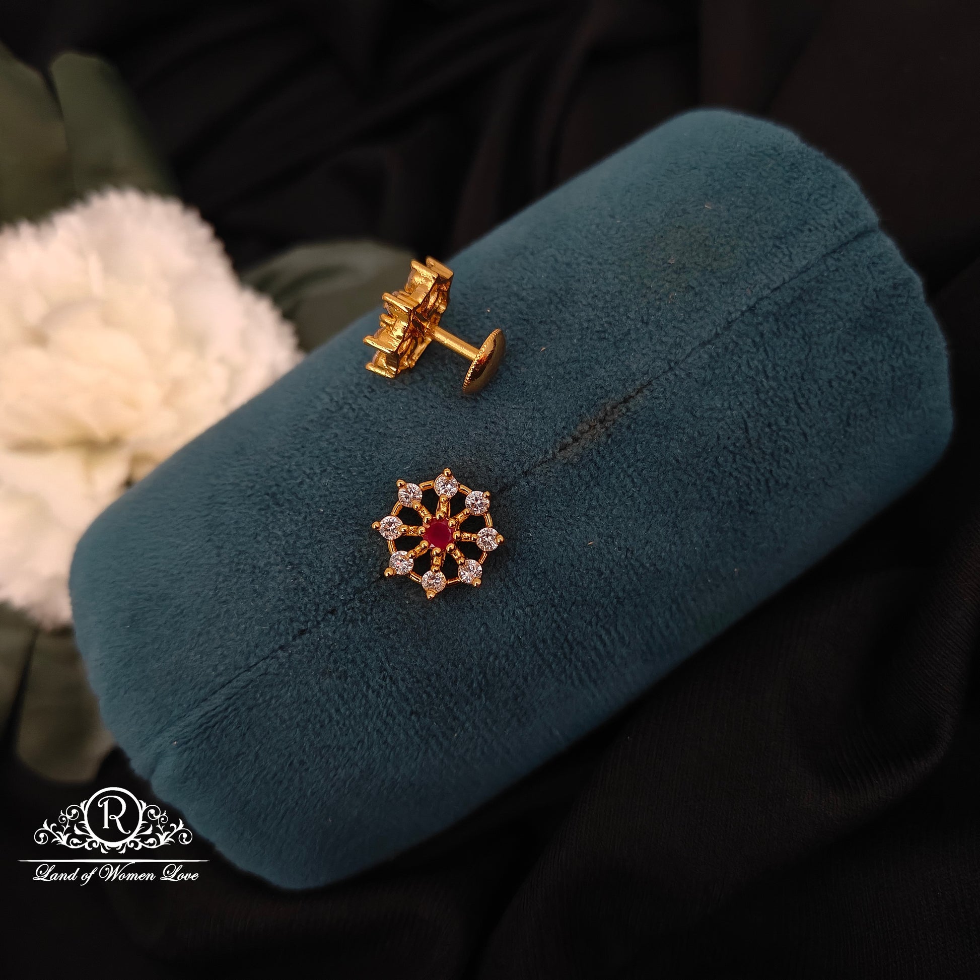 92.5 silver with gold polish flower design earrings south screw pattern design by Ramala collections