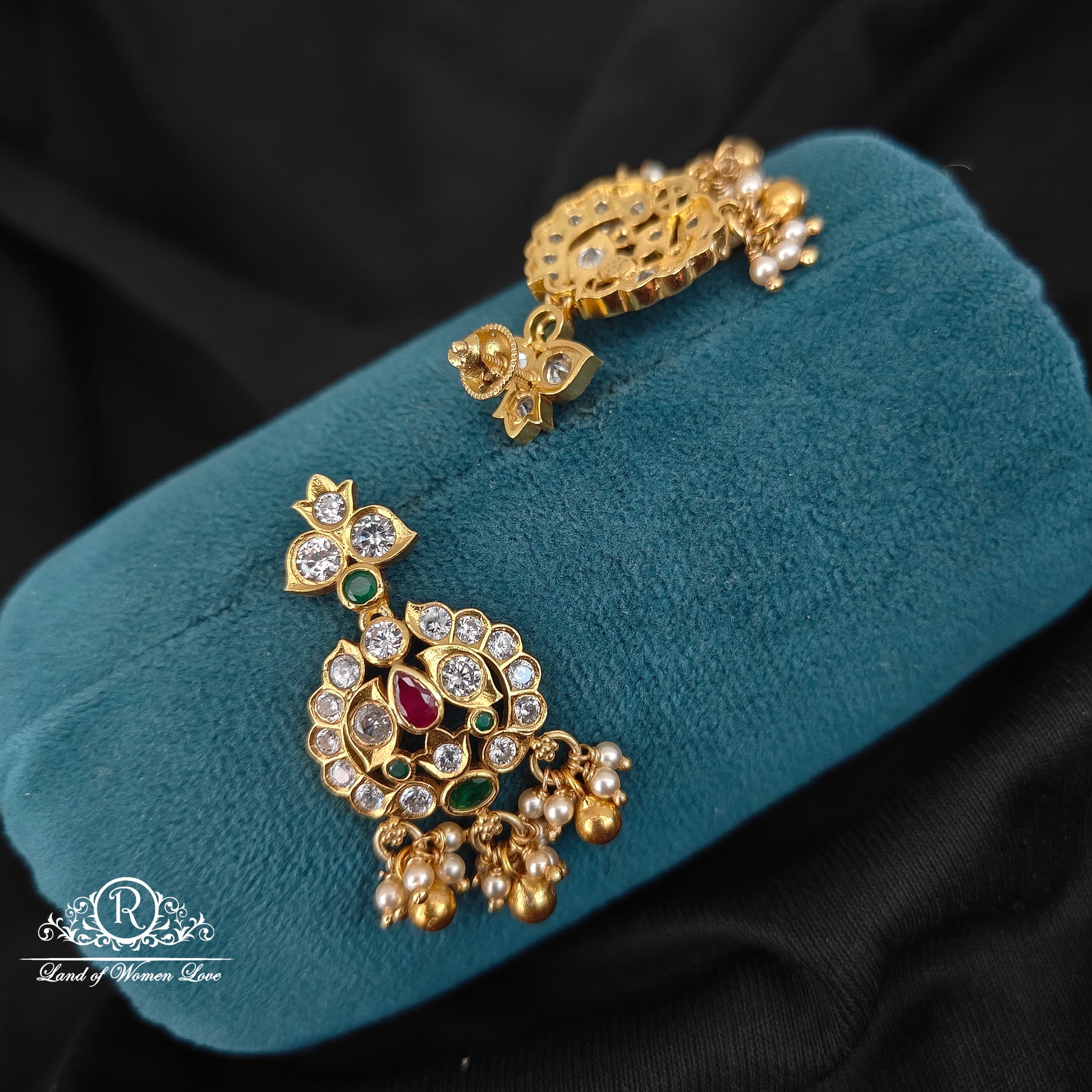 92.5 silver simple and Cute earrings with pearls and gold balls hangings -RCDS310