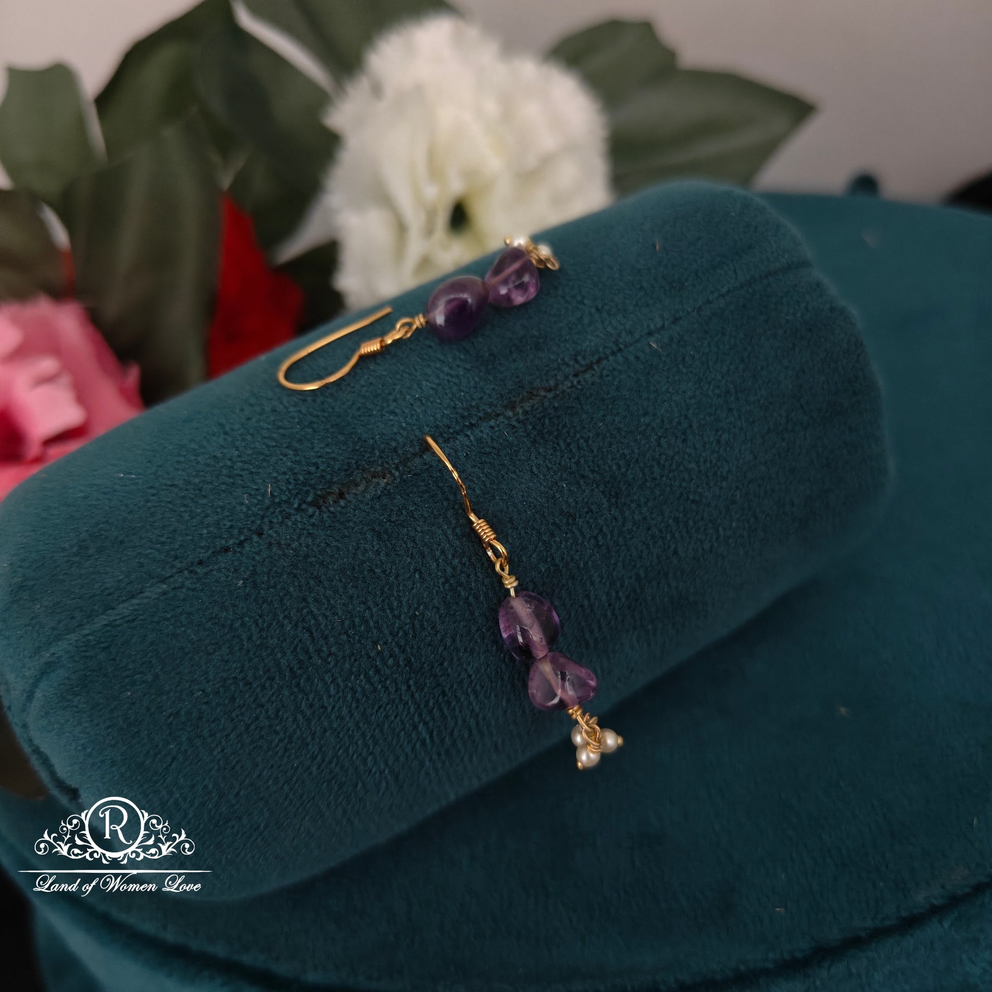 92.5 silver simple and Cute hangings with pearl and purple beads-RCHK0171