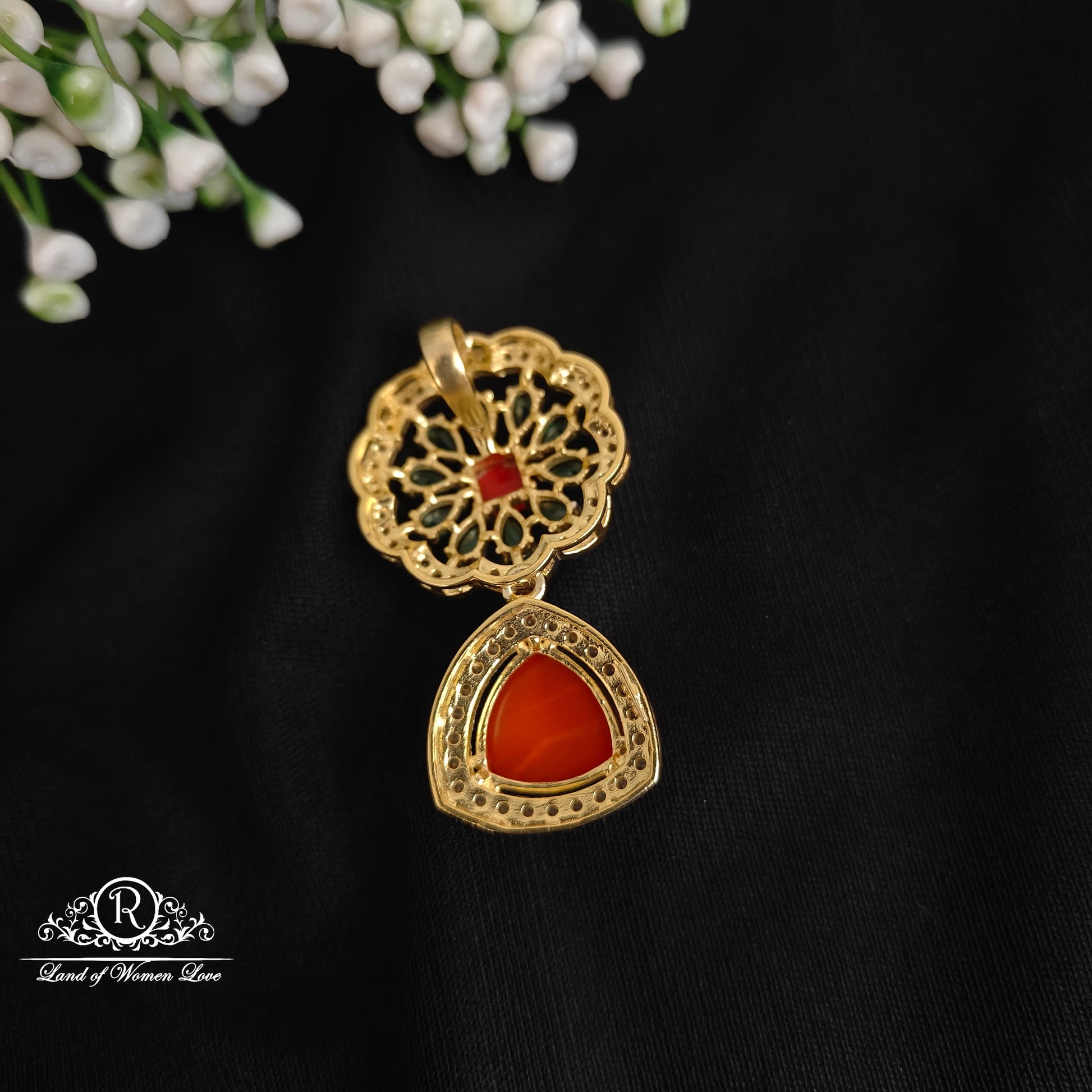 92.5 silver with gold polish mossinate stone coral craving simple and Cute pendant 1.7" inches - RCNJ019