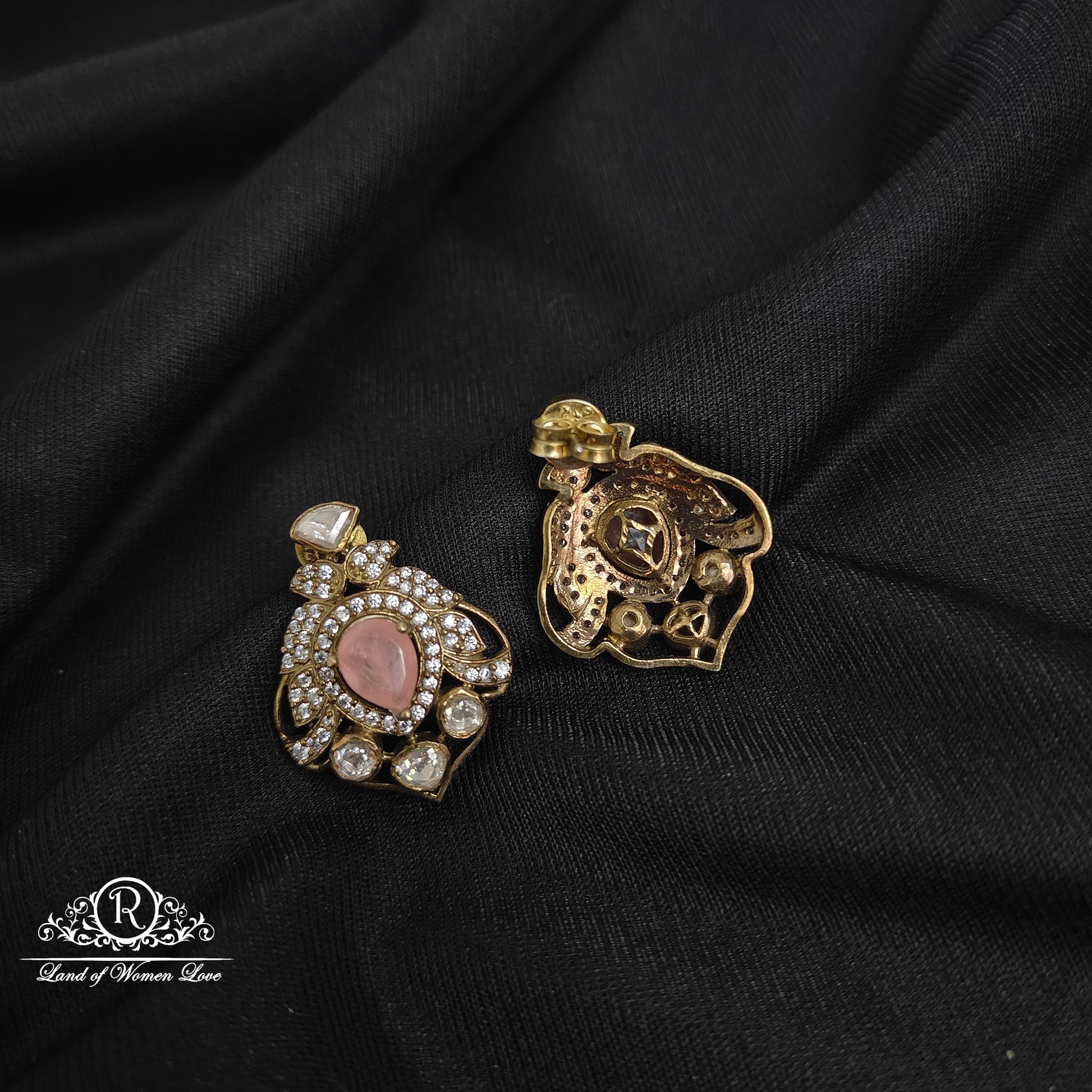 92.5 Silver base 22k gold polish CZ Pink Victorian earrings with 1.2 inches length from Ramala collections ✨