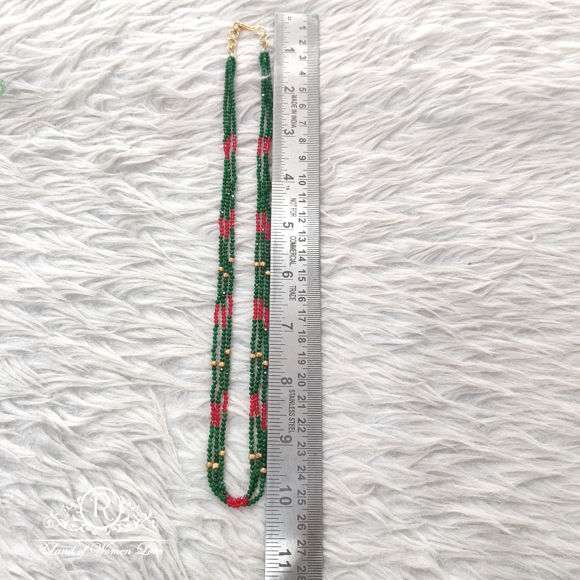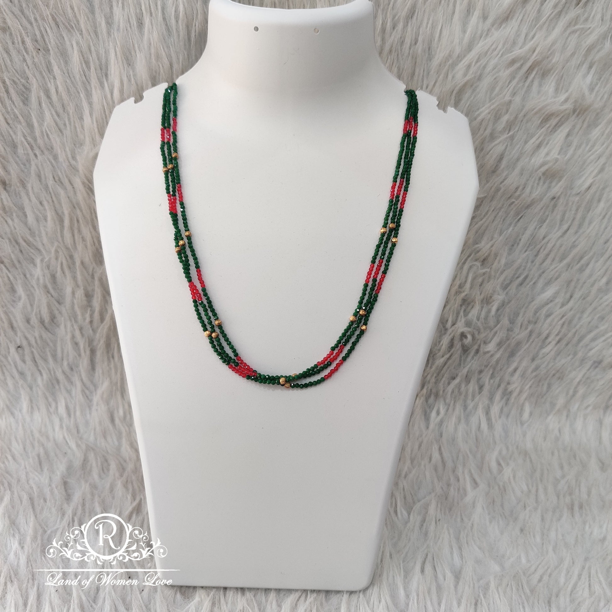 Beads Mala Green & Red Colour Middle gold Ball 3 Lines 20 Inches RCKB07.From Ramala Callection.