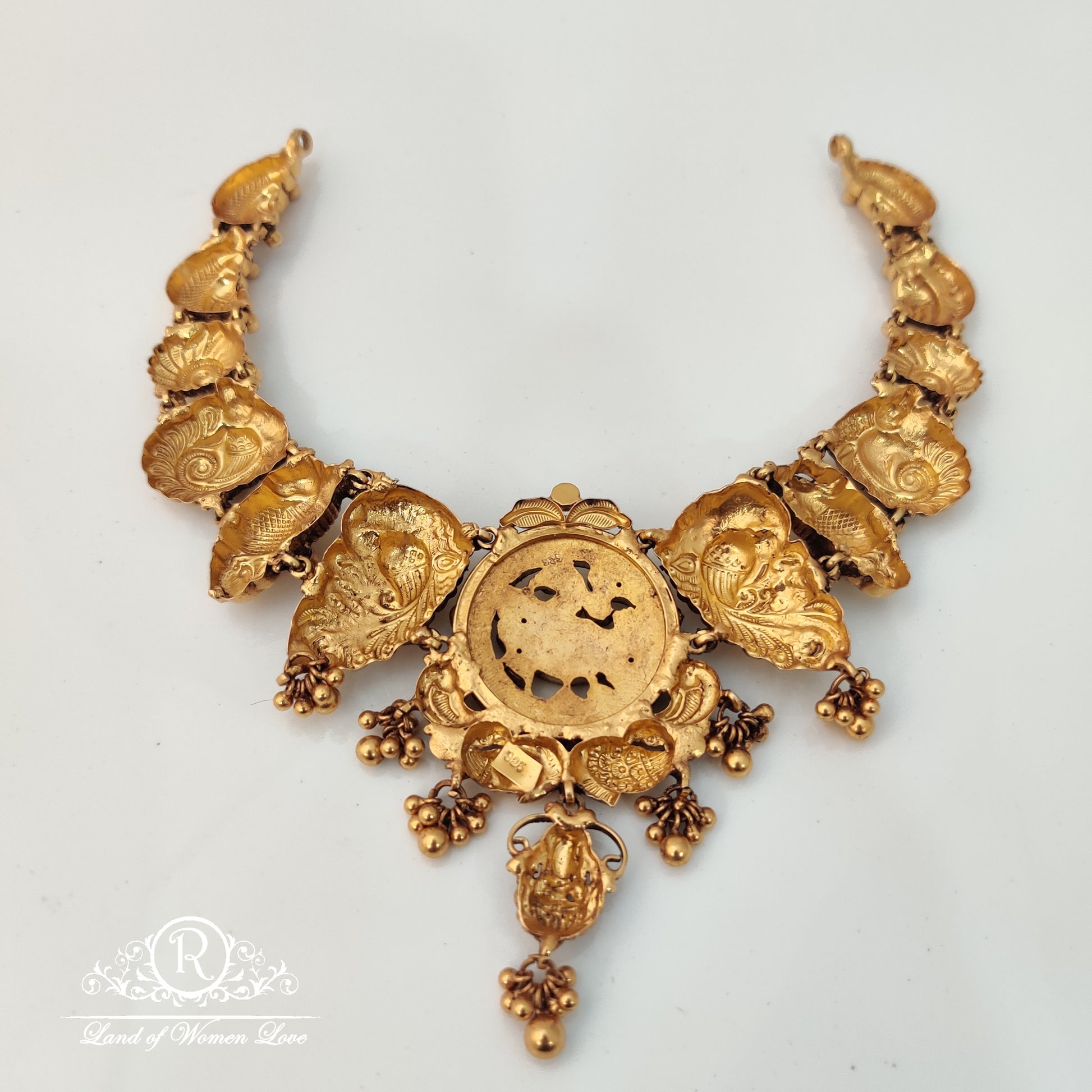 Beautiful silver 💫 necklace with peacock 🦚 design and gold balls hanging 92.5 silver Jewelry with 22k gold coating 14"-RCM753