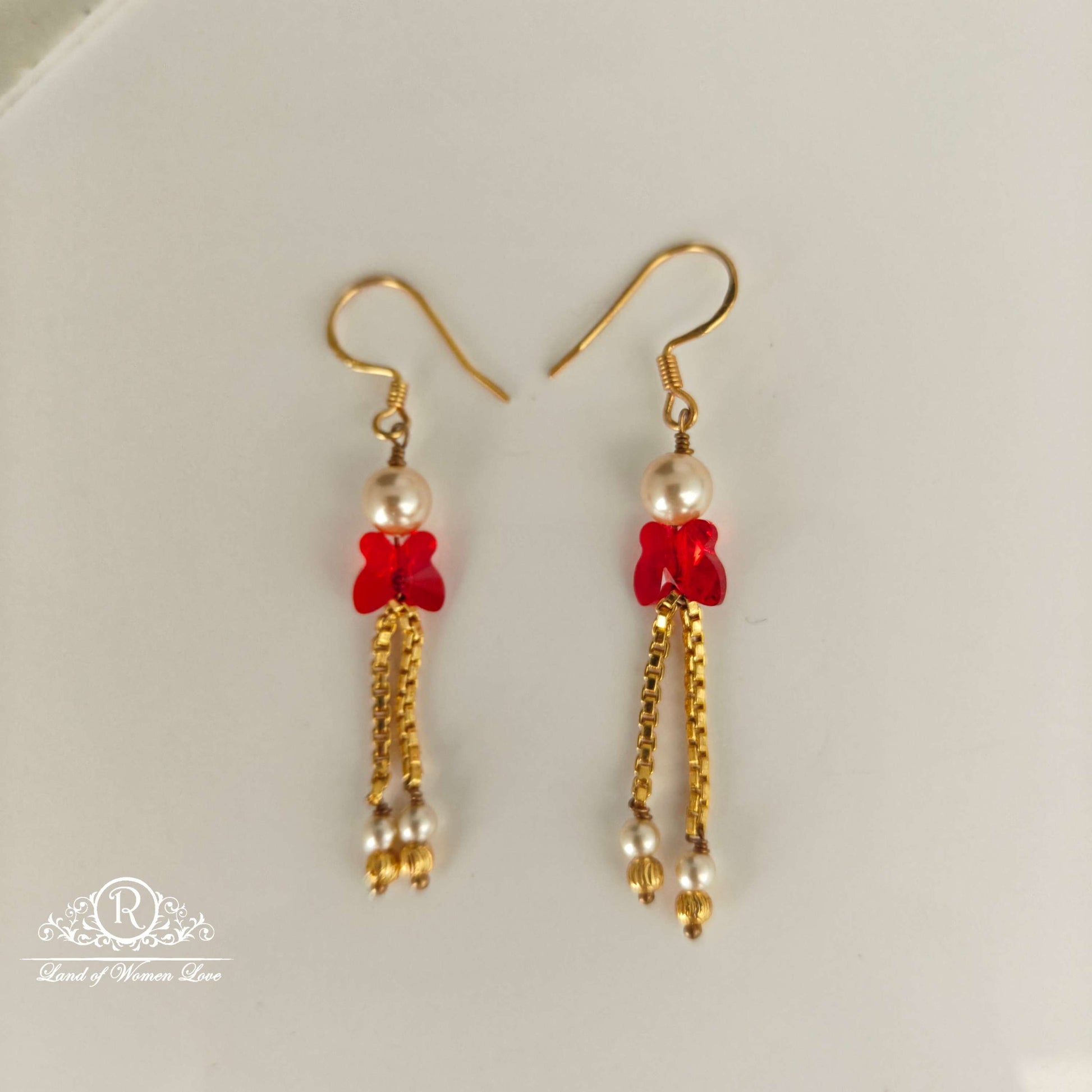 92.5 Silver base 22k gold polish Butterfly beads and pearls Hangings with 2 inches length from Ramala collections ✨