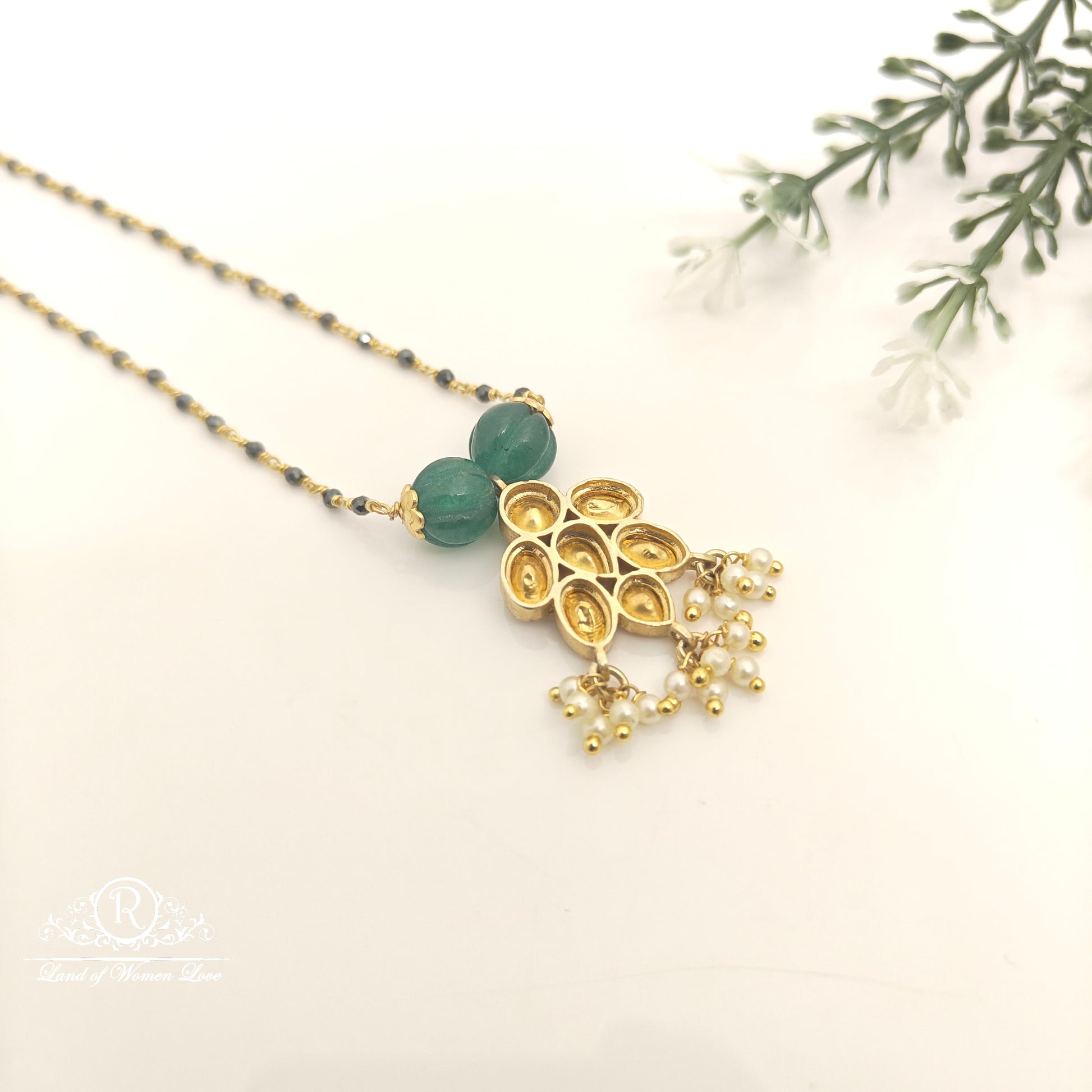 92.5 Silver base 22k gold polish Crystals Black Beads hanging locket with 22 inches length from Ramala collections ✨