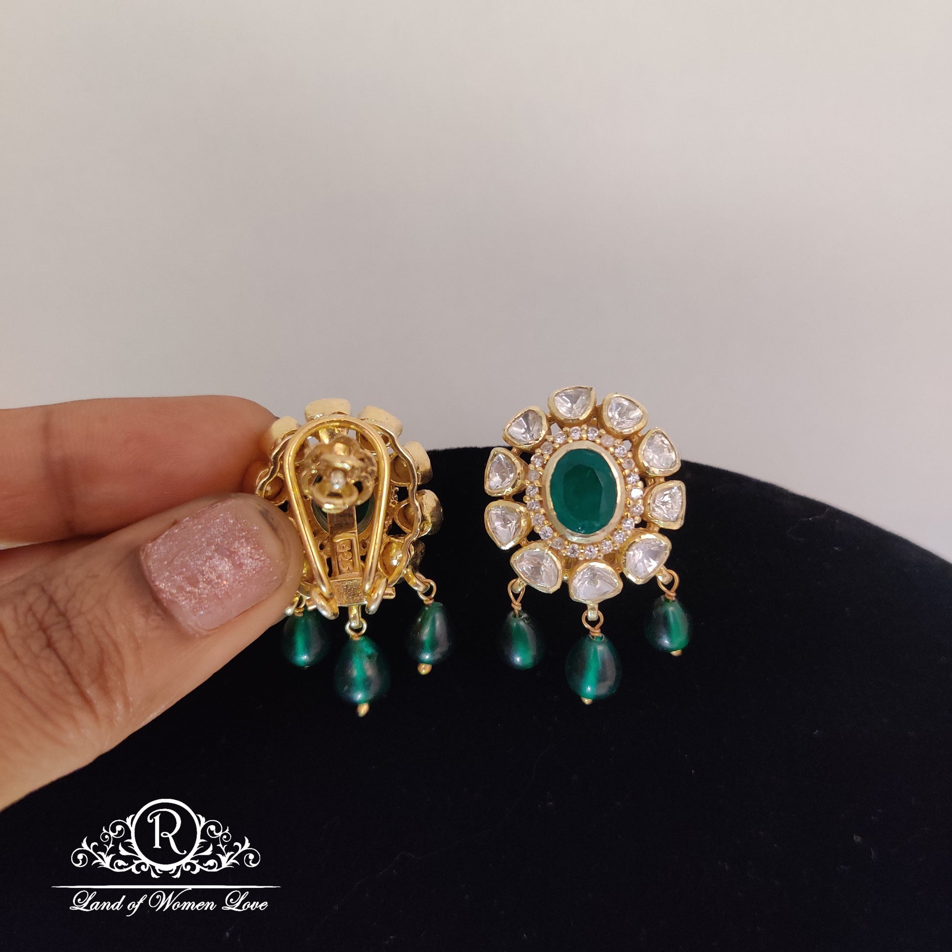 CZ Stones 92.5 Silver base 22k gold polish Earrings hanging beads with 1.5 inches from Ramala Collections ✨