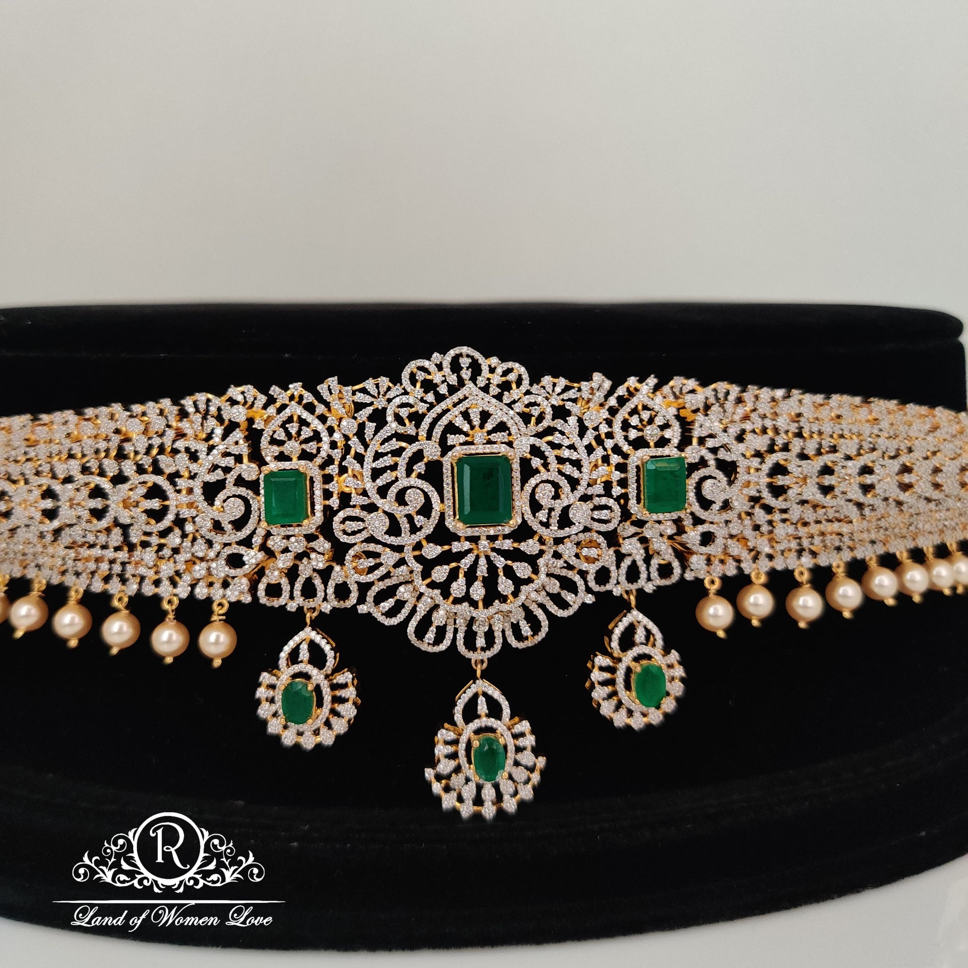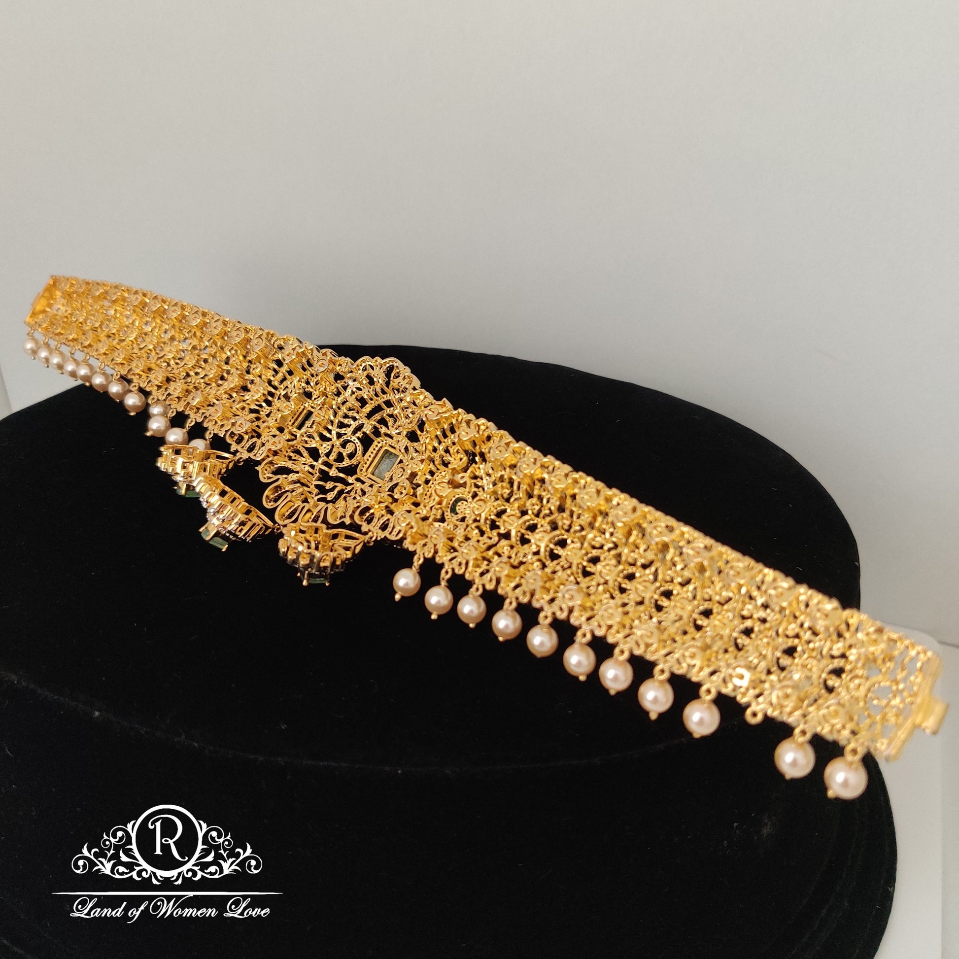 Diamond finishing 92.5 Silver base 22k gold polish Vaddanam hanging pearls with 11.6 inches from Ramala Collections ✨