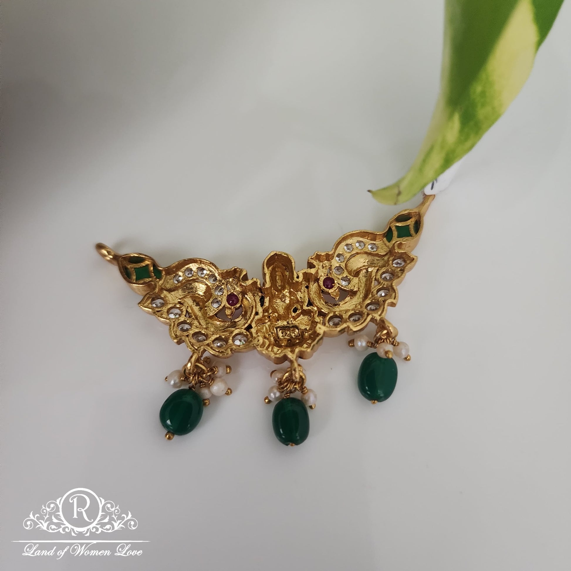 Lakshmi Devi and peacock design 92.5 Silver base 22k gold polish Mala Locket hanging coloured pearls and beads from Ramala Collections ✨