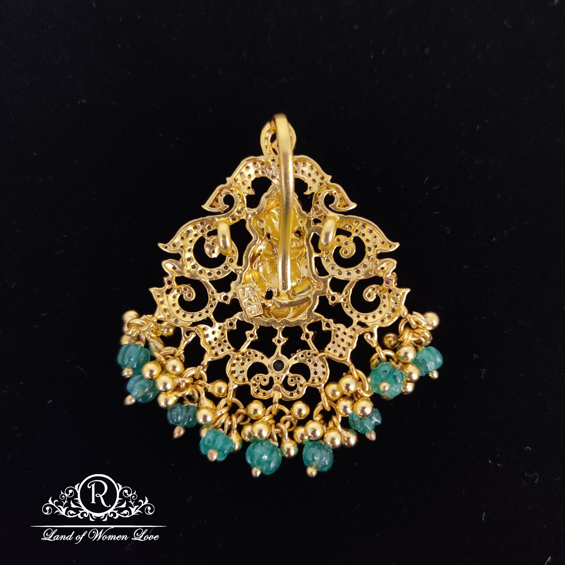 92.5 Silver base 22k gold polish lord Ganesh design pendant hanging pumpkin beads with 2 inches From Ramala Collections ✨