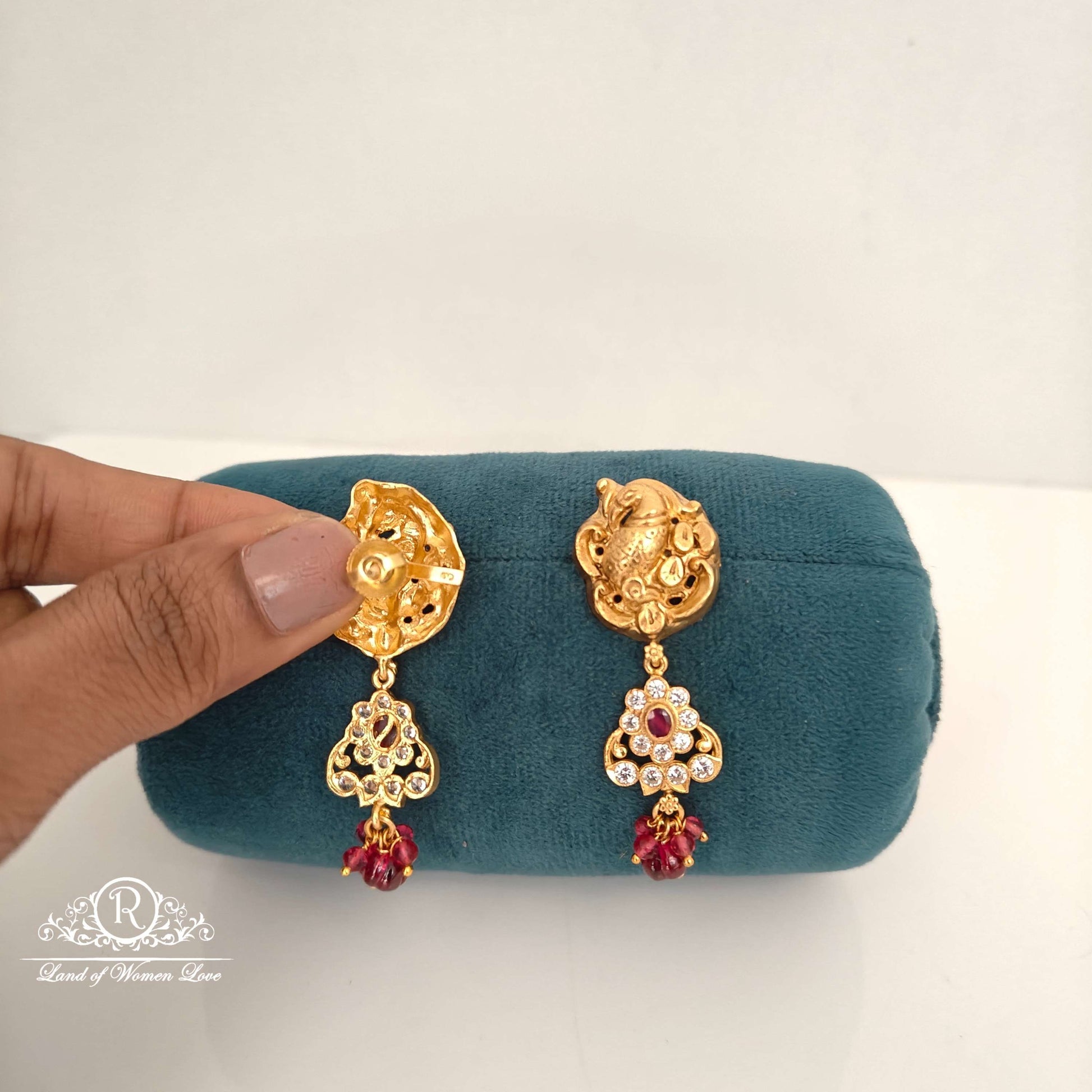 92.5 Silver base 22k gold polish peacock design Earrings hanging pumpkin beads with 2 inches length from Ramala collections ✨