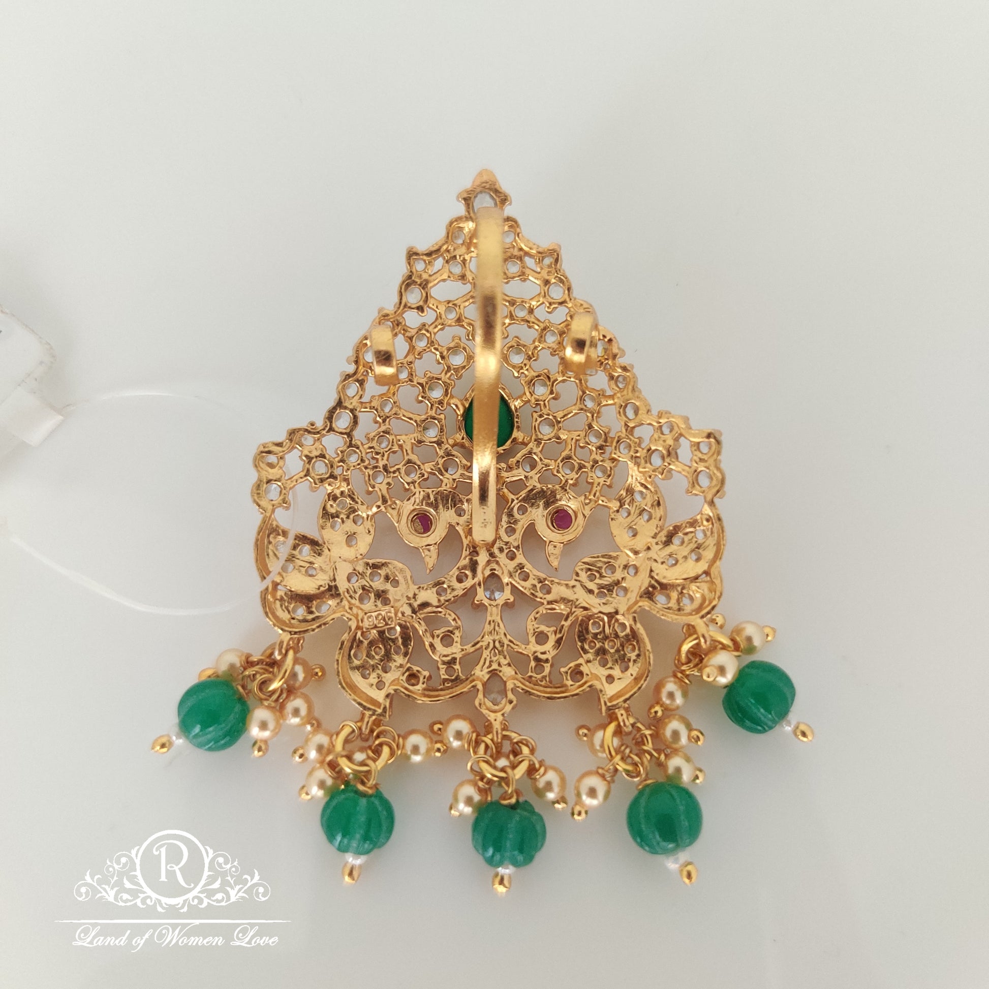 92.5 Silver base 22k gold polish peacock design pendant hanging pumpkin beads and pearls from Ramala Collections ✨
