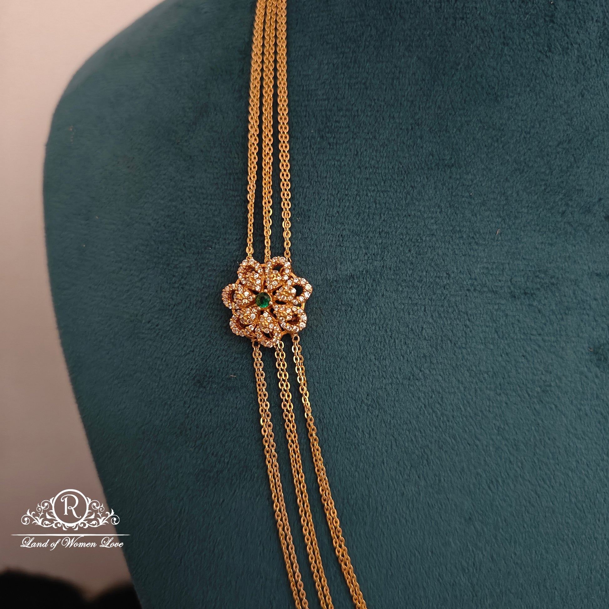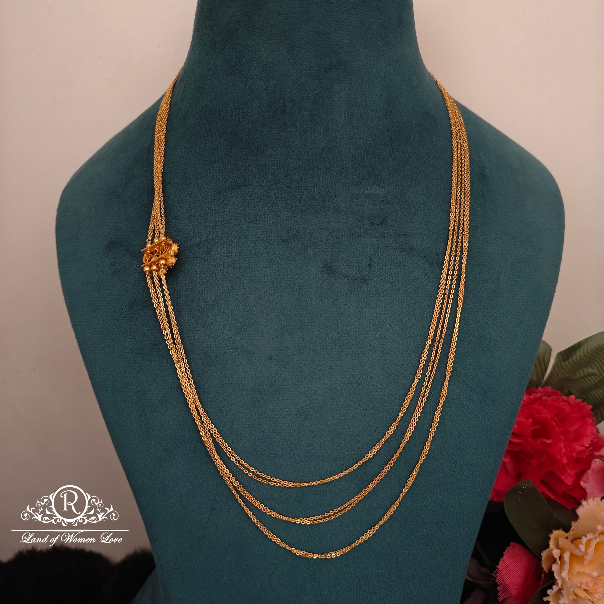 92.5 Silver with gold polish light weight chandraharam 3 steps chain model with side locket 26 inches length elegant look design by Ramala collections