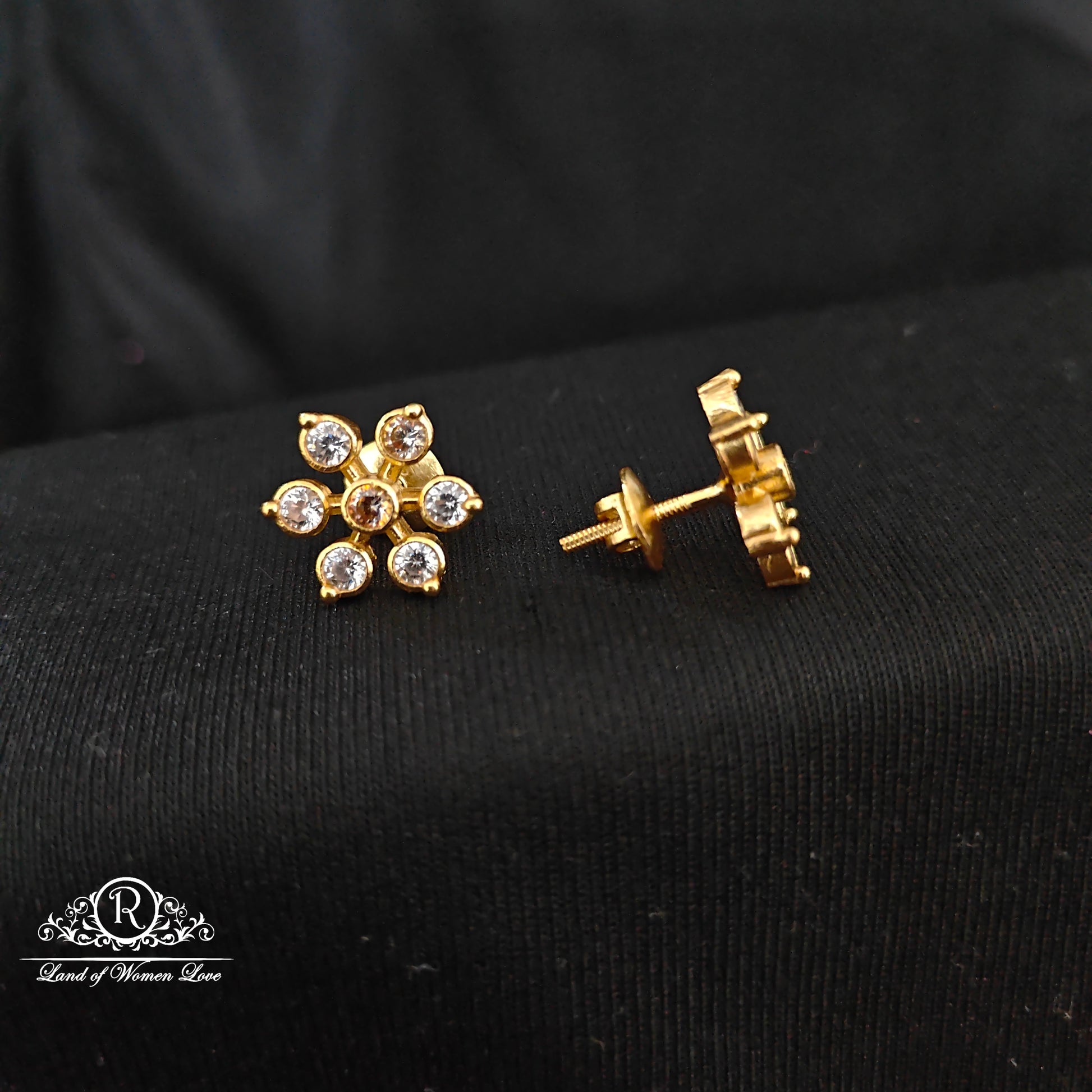 92.5 Silver with gold polish light weight earrings 7 stones with Bombay screw pattern elegant look design by Ramala collections