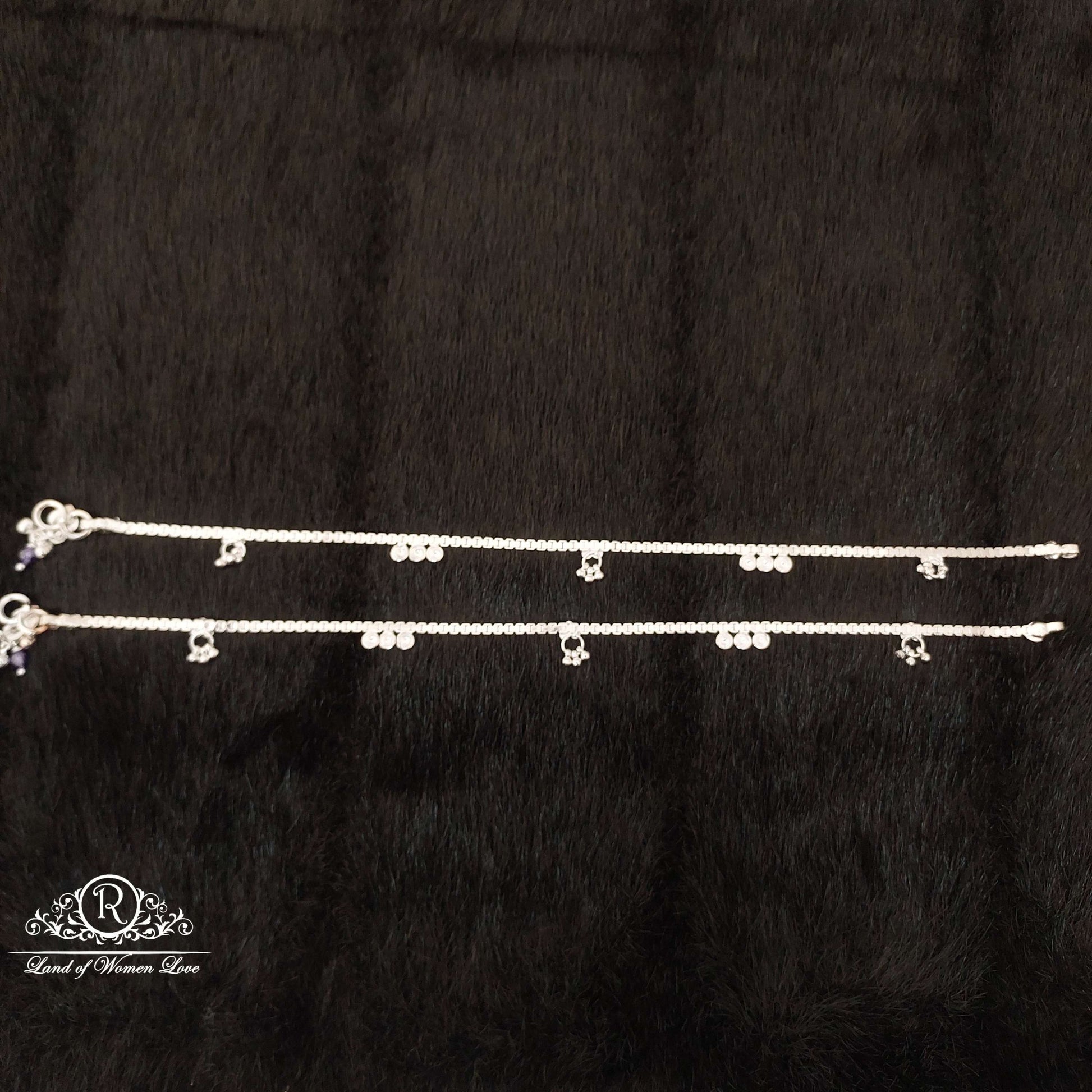 92.5 Silver Jewelry Beautiful Anklets Designs With Hanging Silver Balls With 10.5" Inches. From Ramalacollections