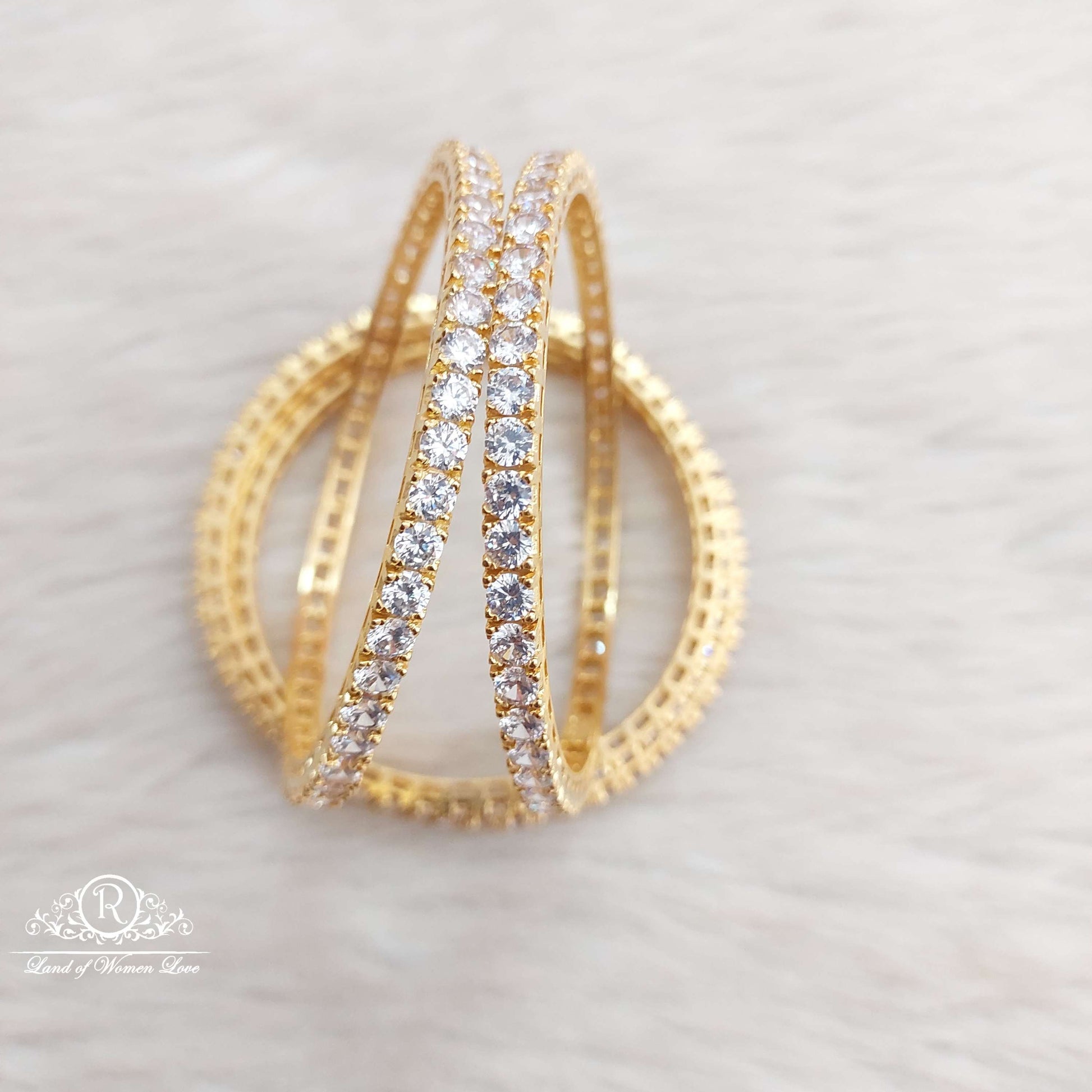 92.5 Silver Jewelry Beautiful White Stones Bangles Designs With 22k Gold Coating With 2.4" inches. From Ramalacollections