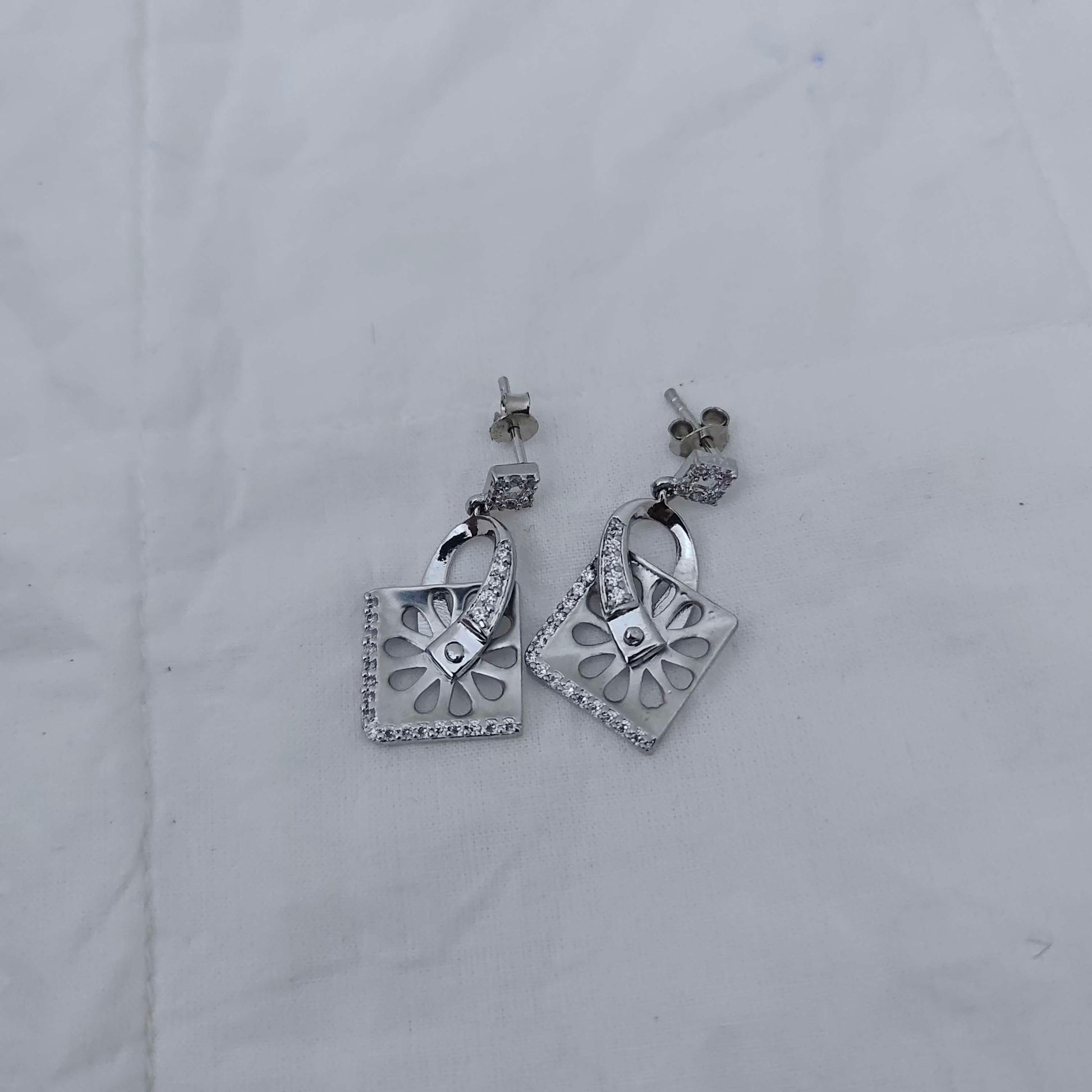 Silver base earrings designs beautiful white stone 1 inches from Ramala Collection