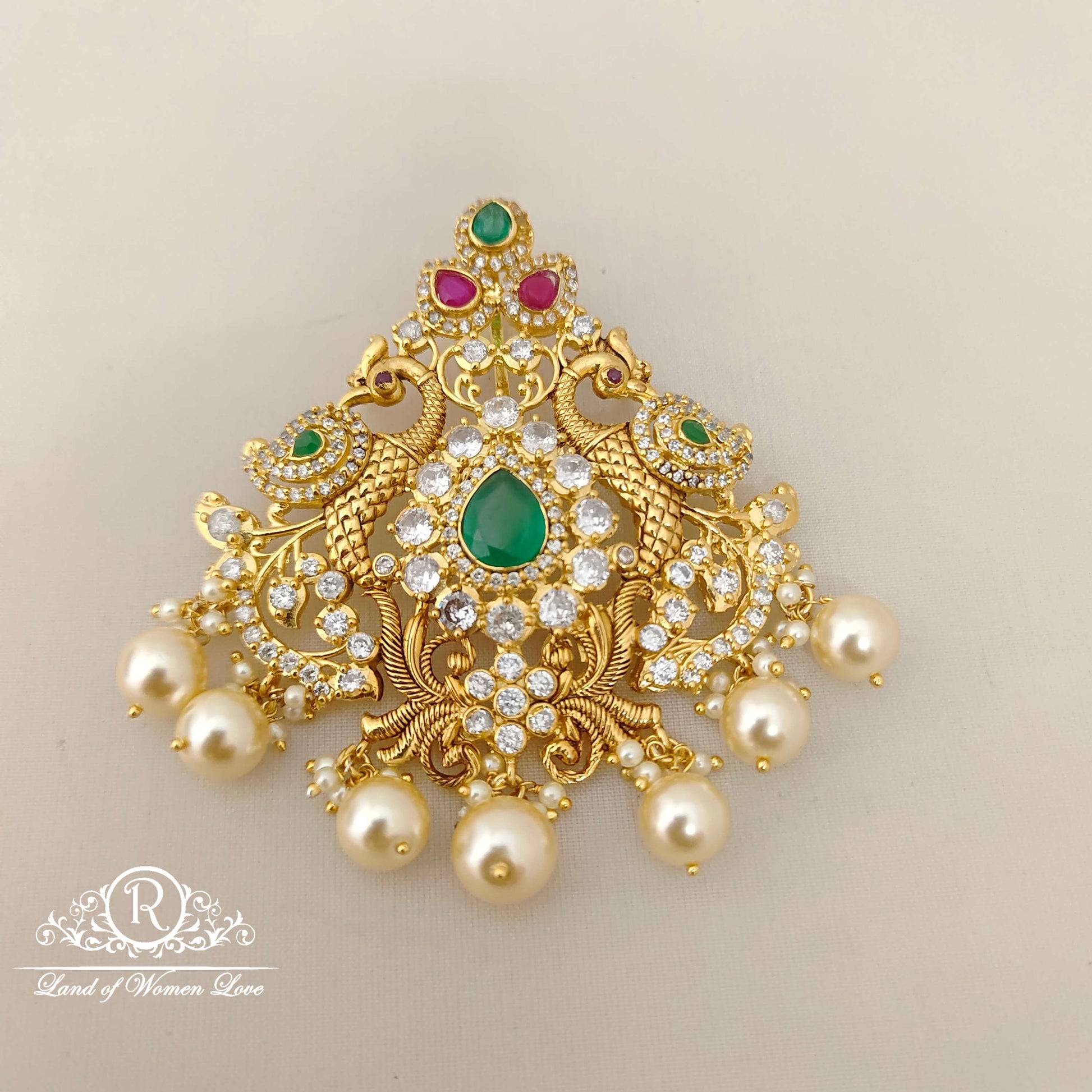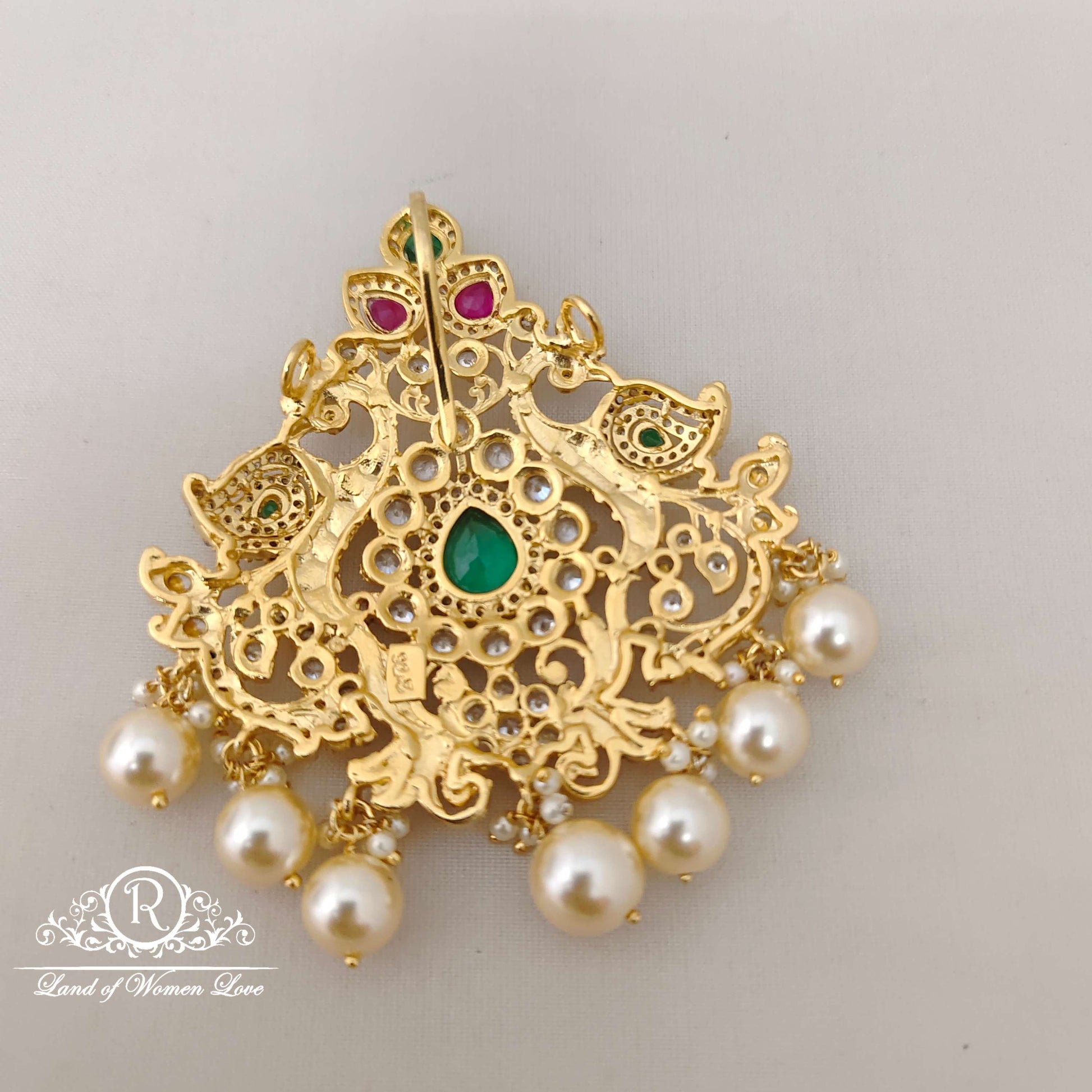 Silver base peacocks design with pearls beads hanging back openable hook 3 Inches length design by ramalacollections