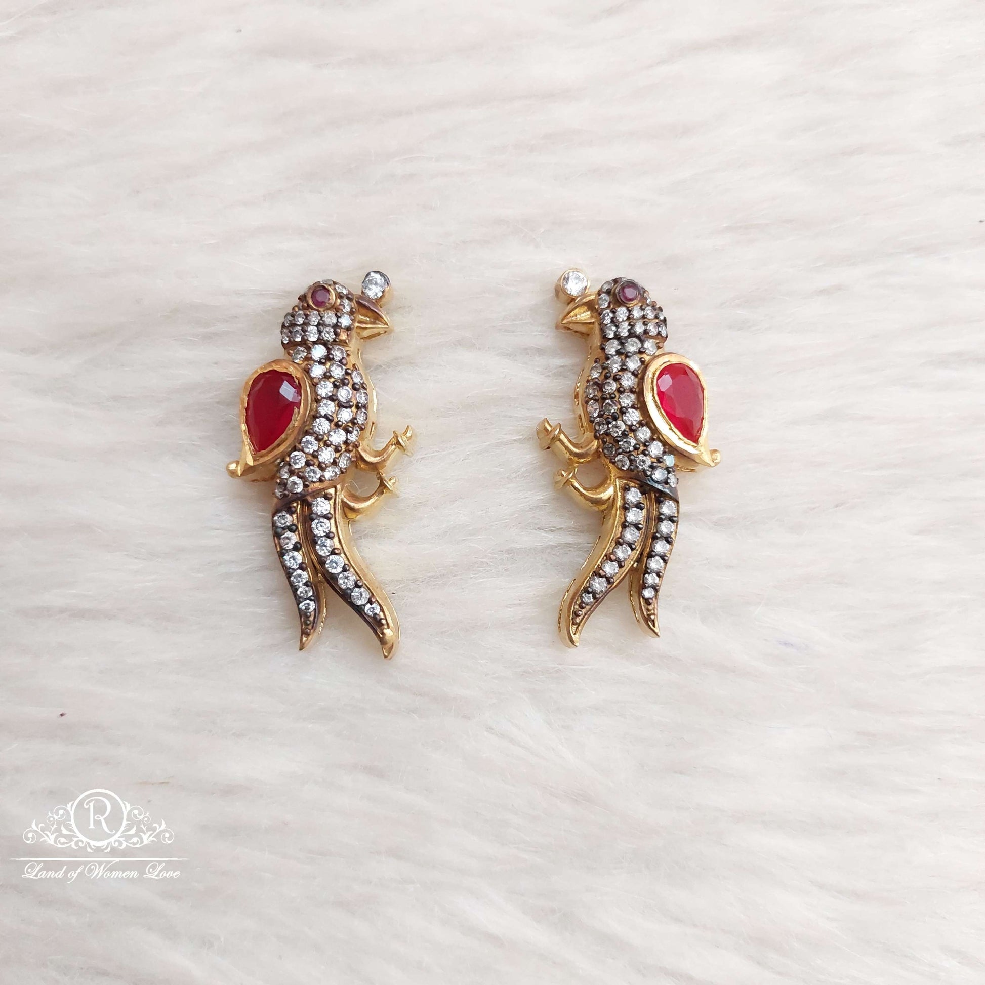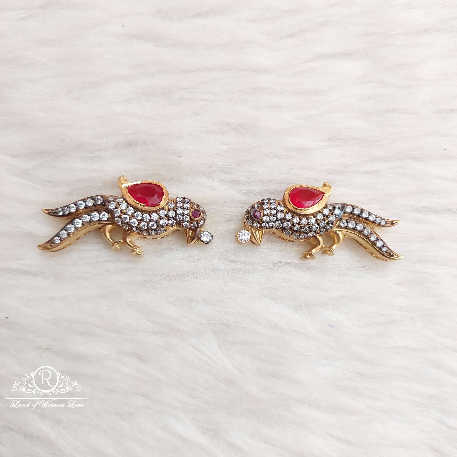 92.5 Silver Jewelry Beautiful Birds Model 2 Said Locket Designs With White Stones Middle Red Stone with 22k Gold & Black Falish Designs