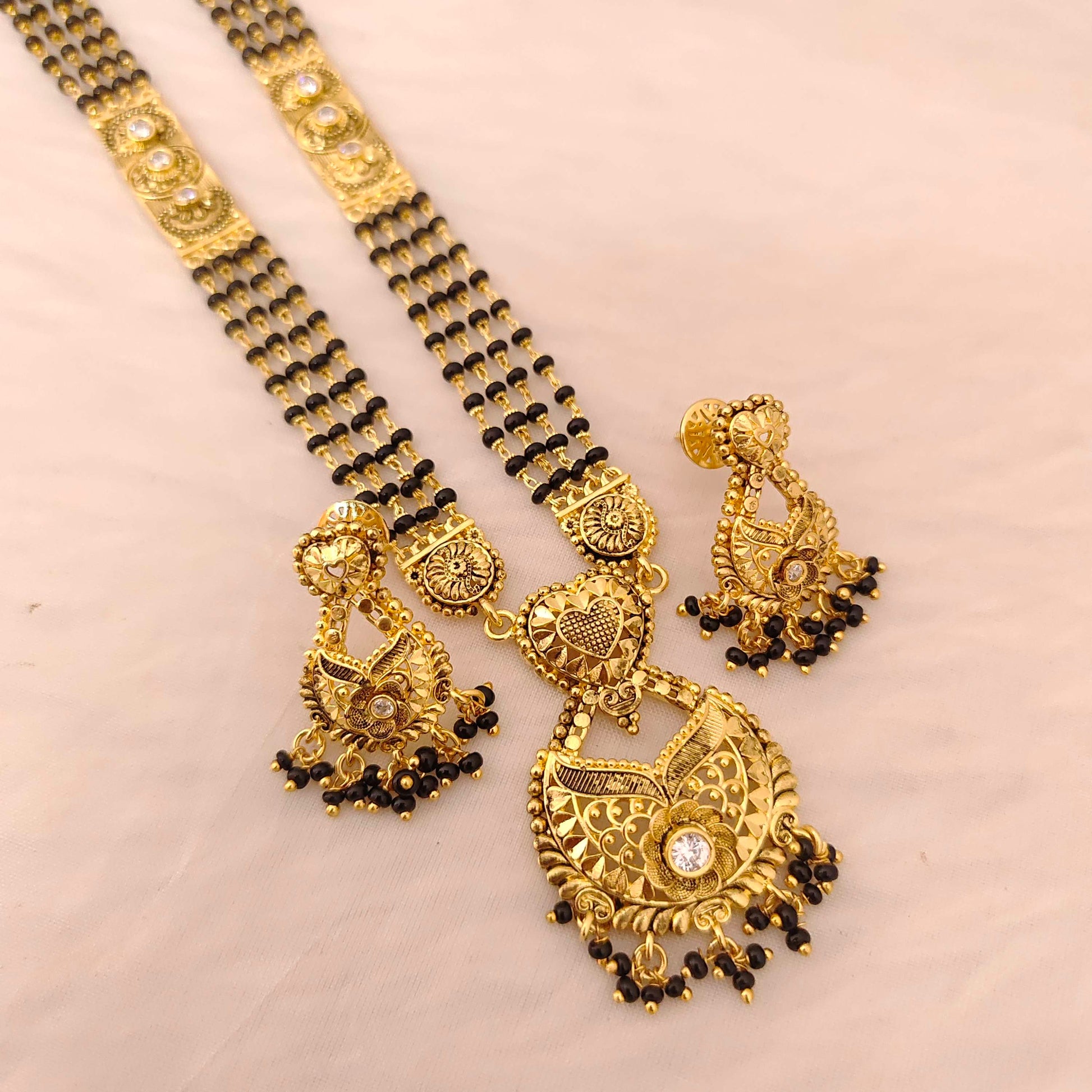 Silver base gold polish beautiful black beads collection unique style heavy pattern 28 inches length design by ramalacollections