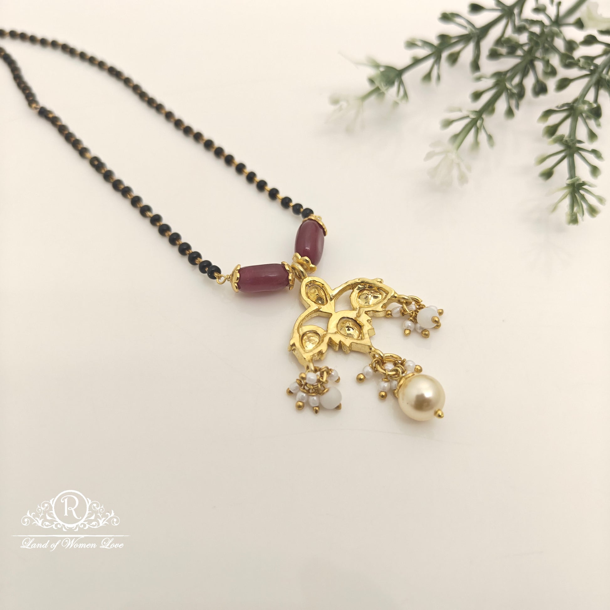 92.5 Silver base 22k gold polish Black Beads with 20 inches length hanging locket from Ramala collections ✨