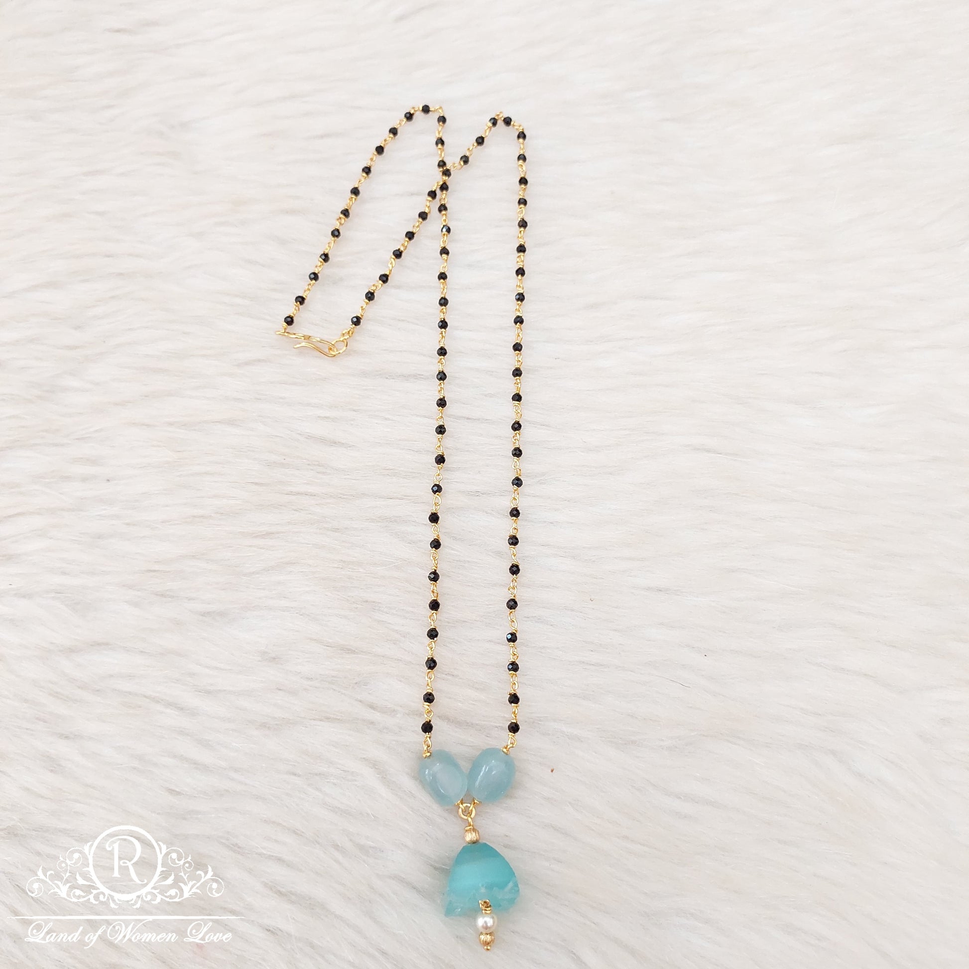 92.5 Silver jewelry latest black beads designs with gold coating with 21" inches