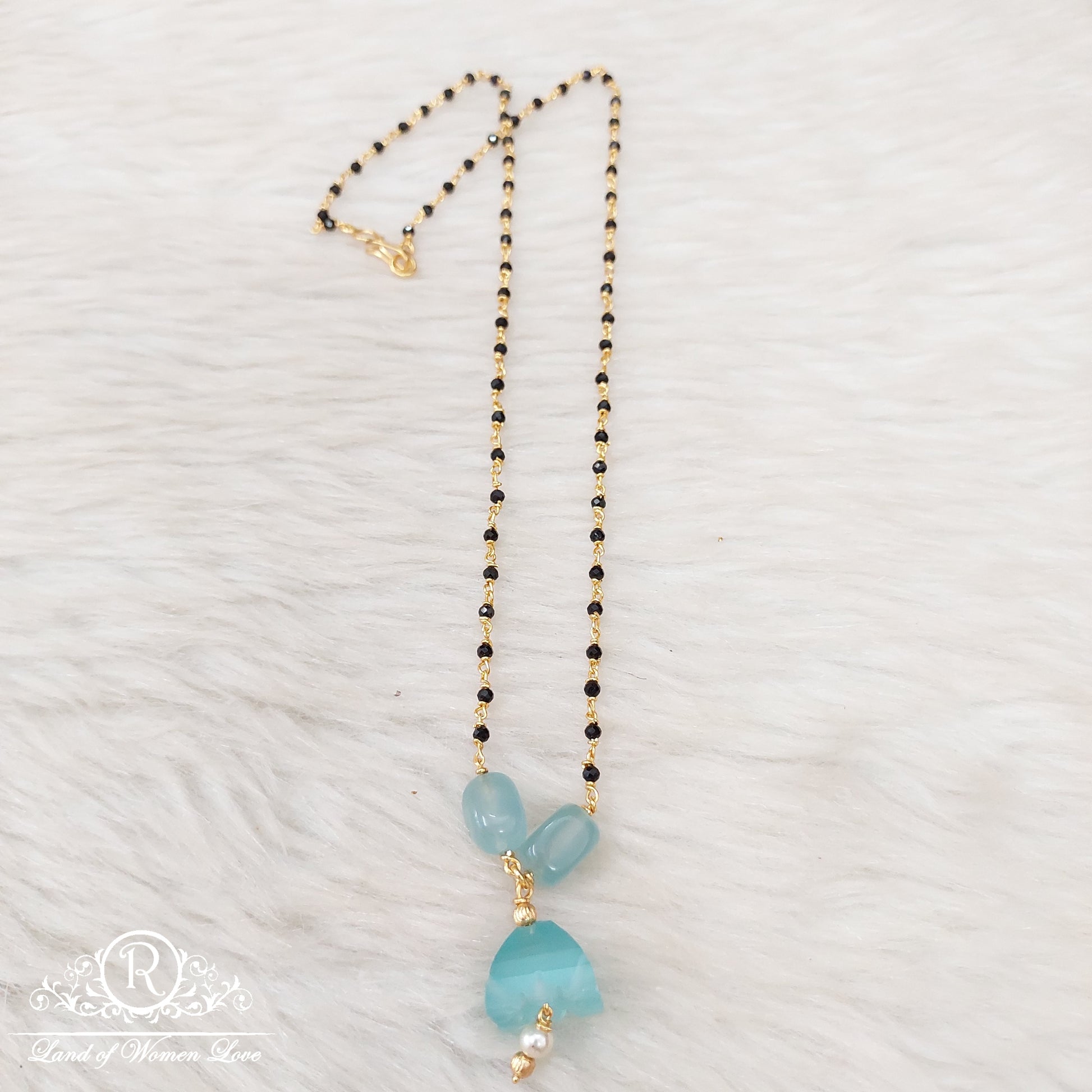 92.5 Silver jewelry latest black beads designs with gold coating with 19" inches