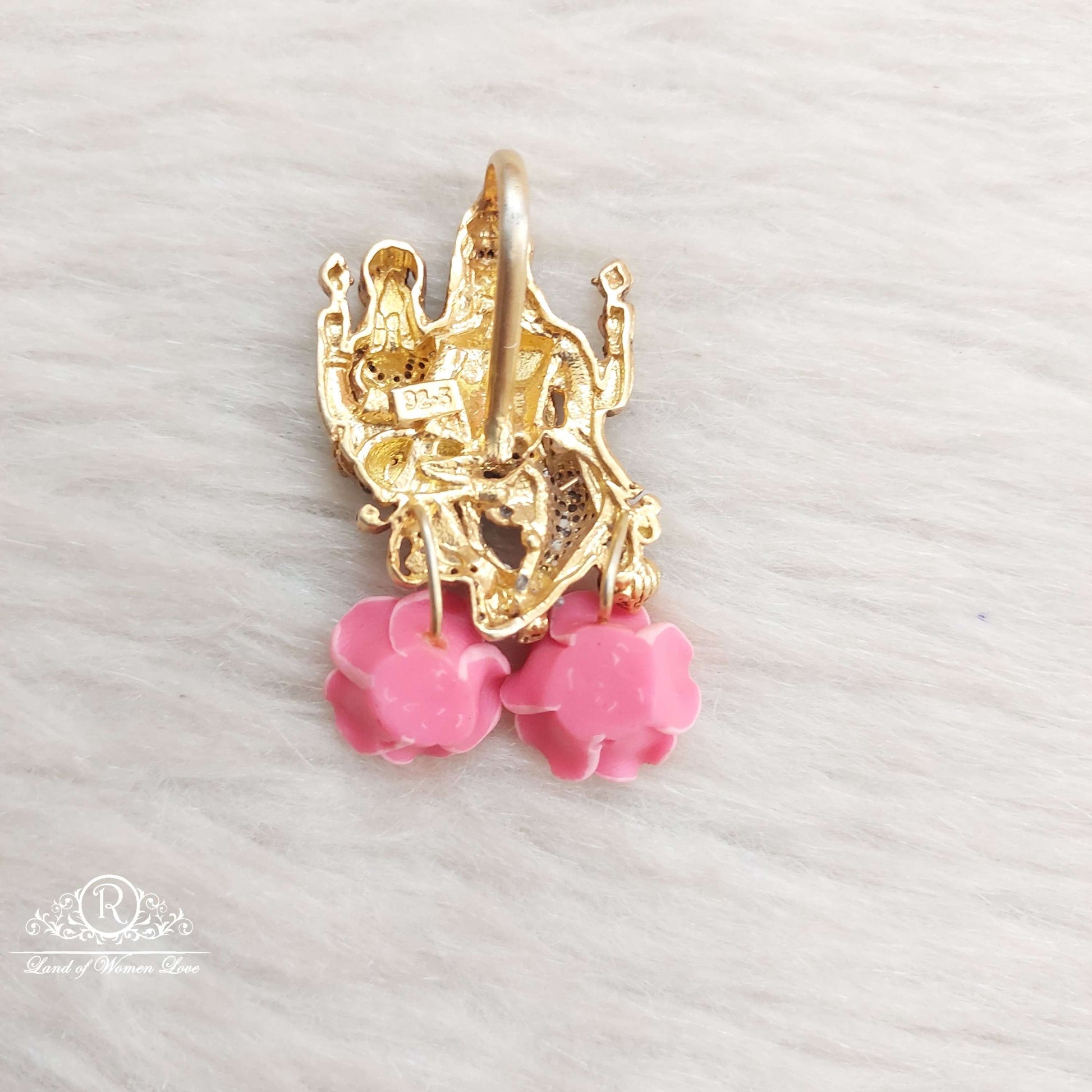92.5 Silver Jewelry Beautiful Black Cz Shiva Parvathi Locket Designs With White Stones With 22k Gold coating With 1.7" Inches Hanging Rose Flower Type. From Ramalacollections