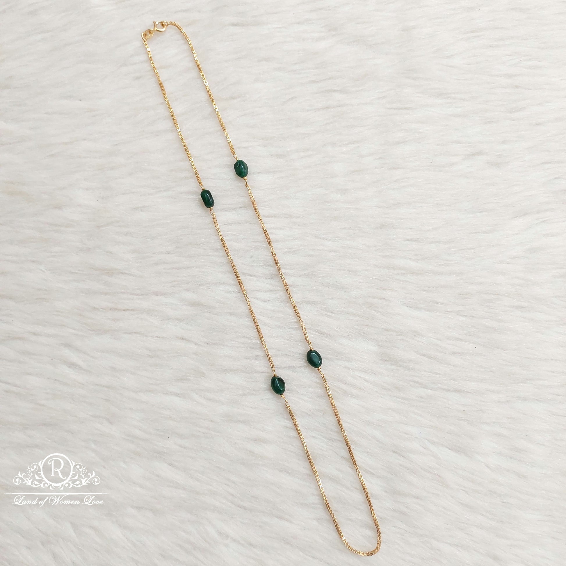 92.5 Silver Jewelry Beautiful Chain Designs With 22k Gold Coating With middle Green Beads With 19" Inches.From Ramalacollections