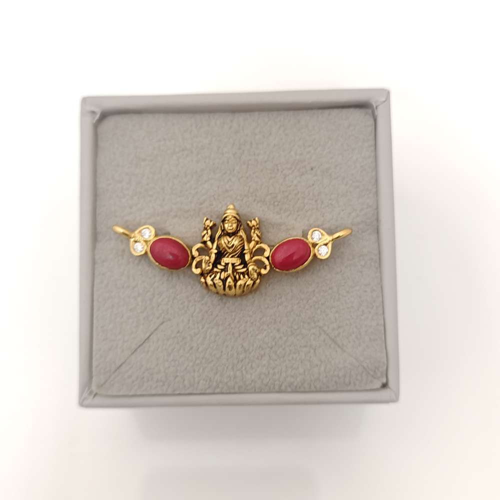 92.5 Silver base gold polish Lakshmidevi Mala Locket with Pagadam & White stones back side 2 hooks model by ramalacollections