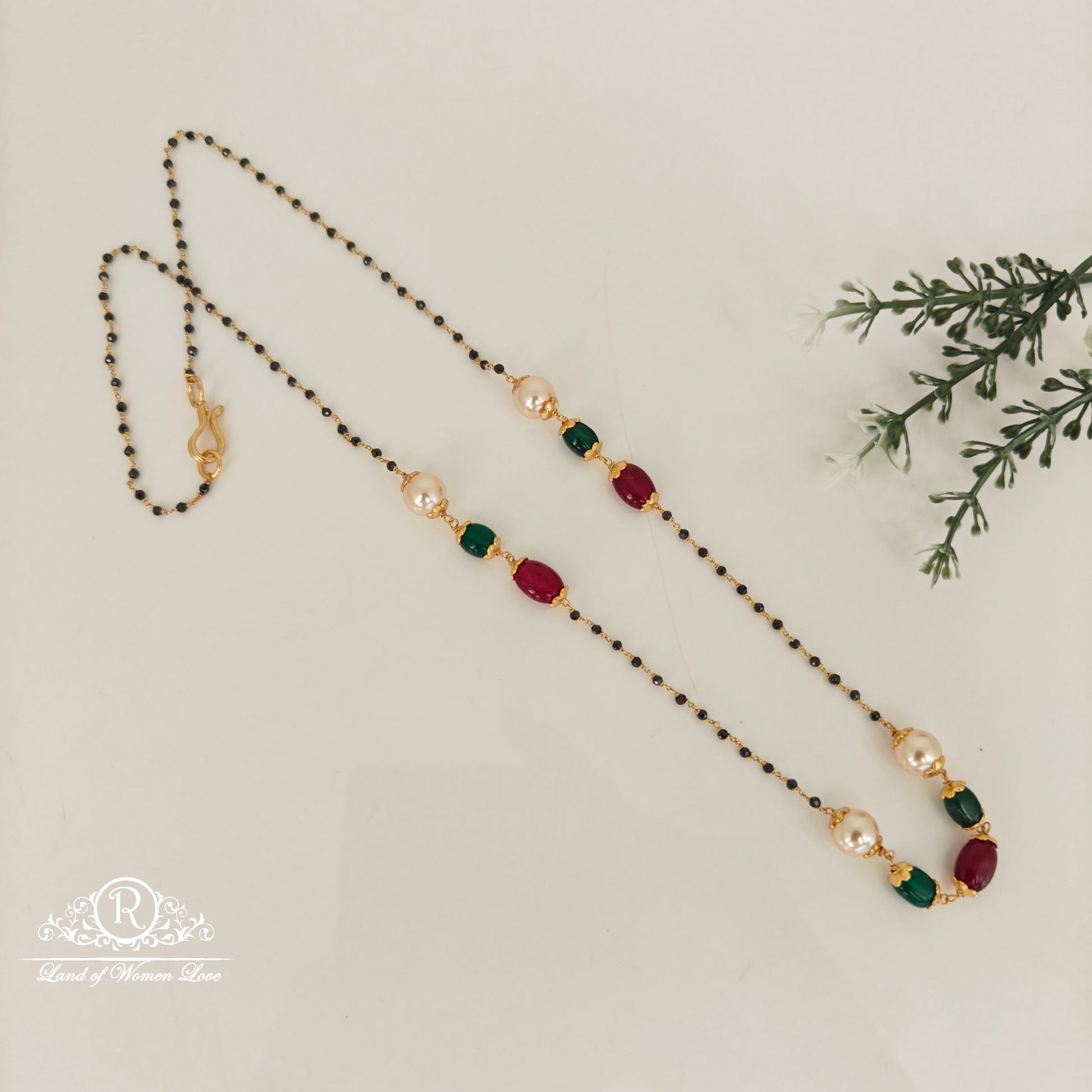 92.5 Silver base 22k gold polish Crystals Black Beads with 22 inches length from Ramala