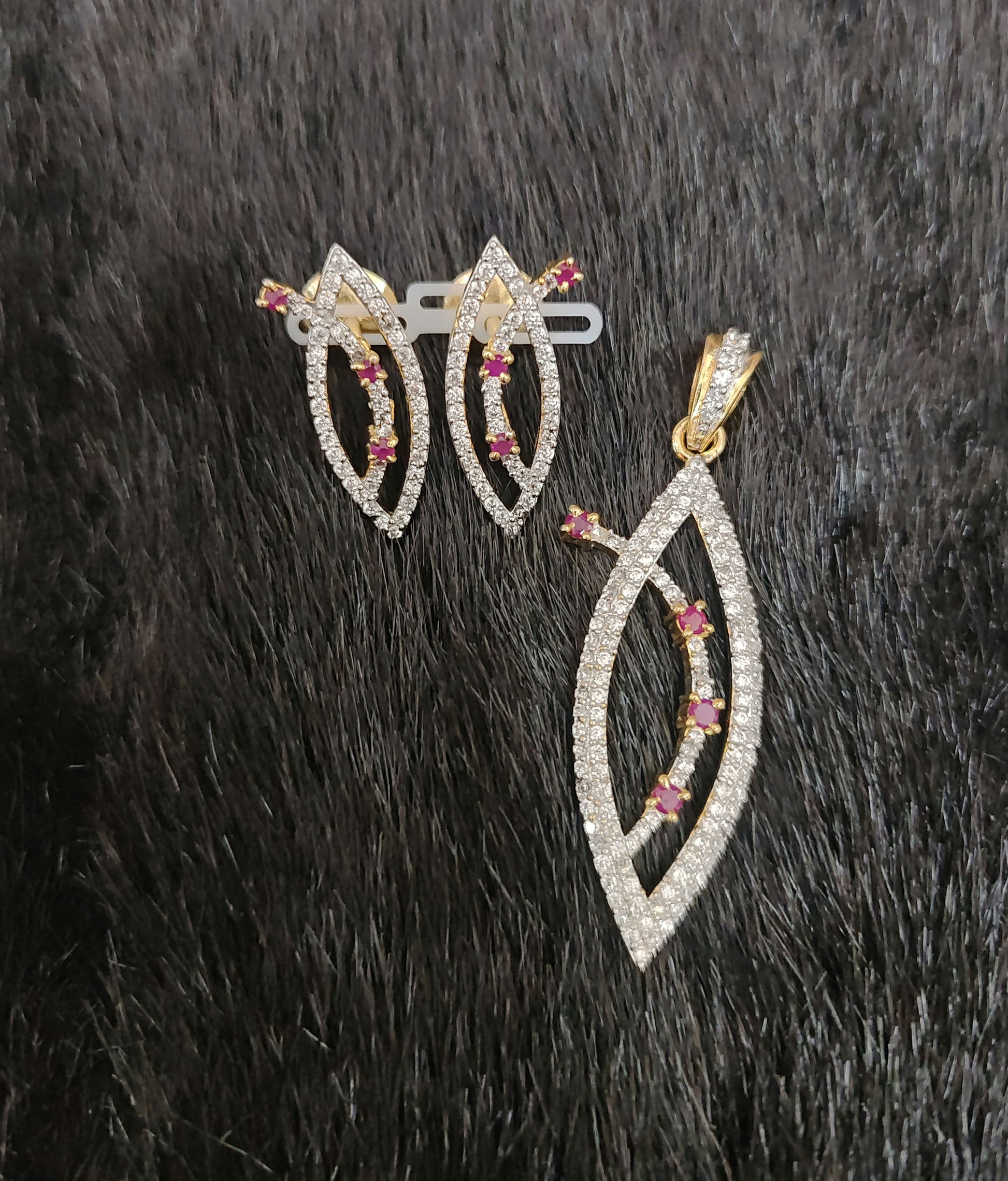 92.5 Silver Jewelry Beautiful Cz Earrings With Matching Locket Designs With 22k Gold Coating With White Stones Middle Kempu Stones. From Ramalacollections