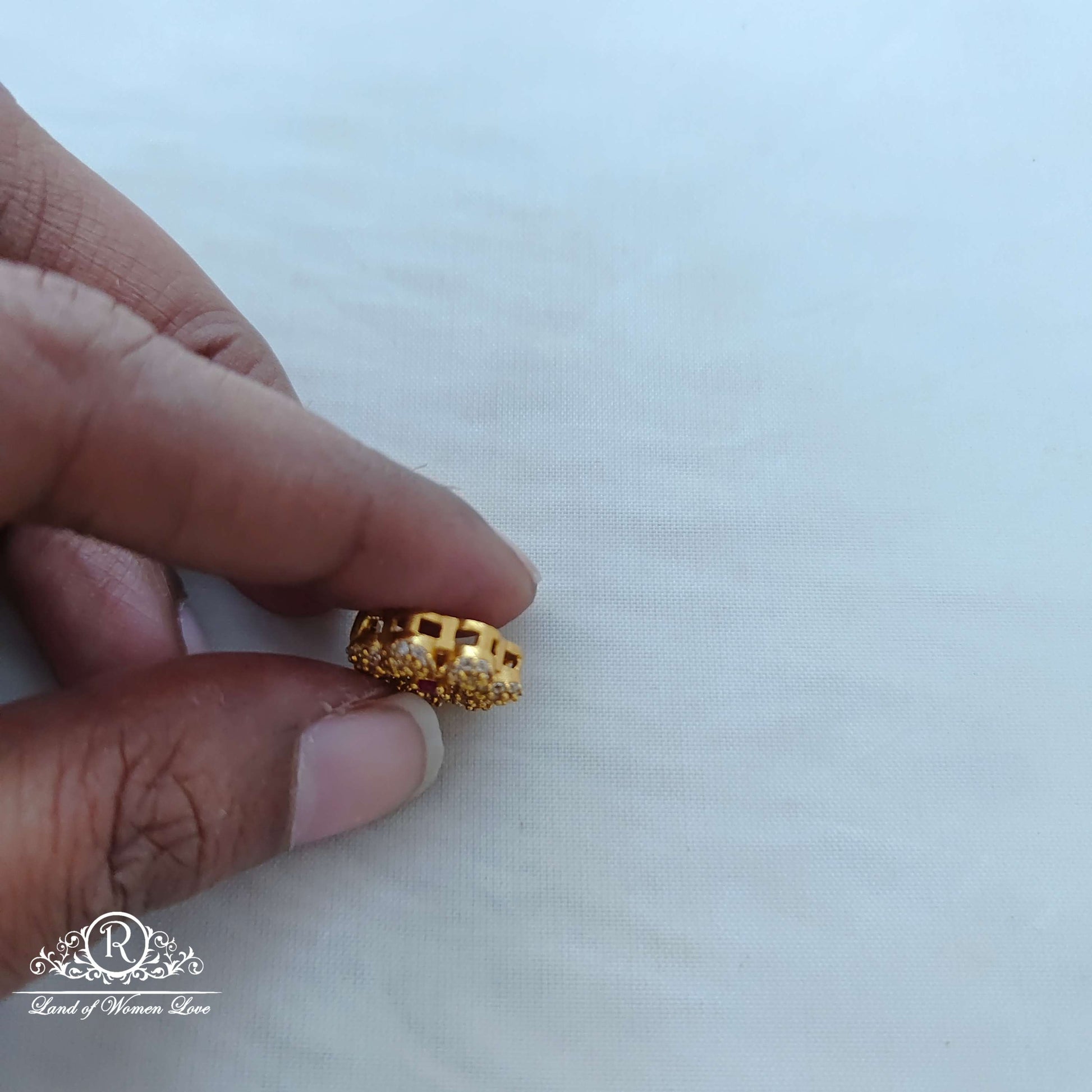 Silver base gold polish light weight CZ stone flower side pendant design by ramalacollections