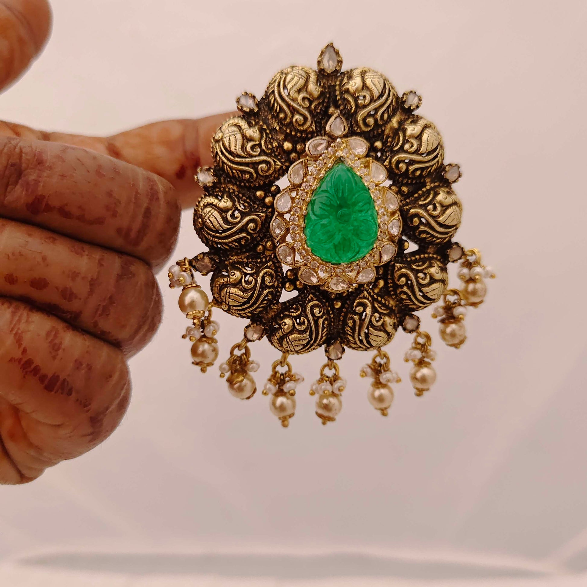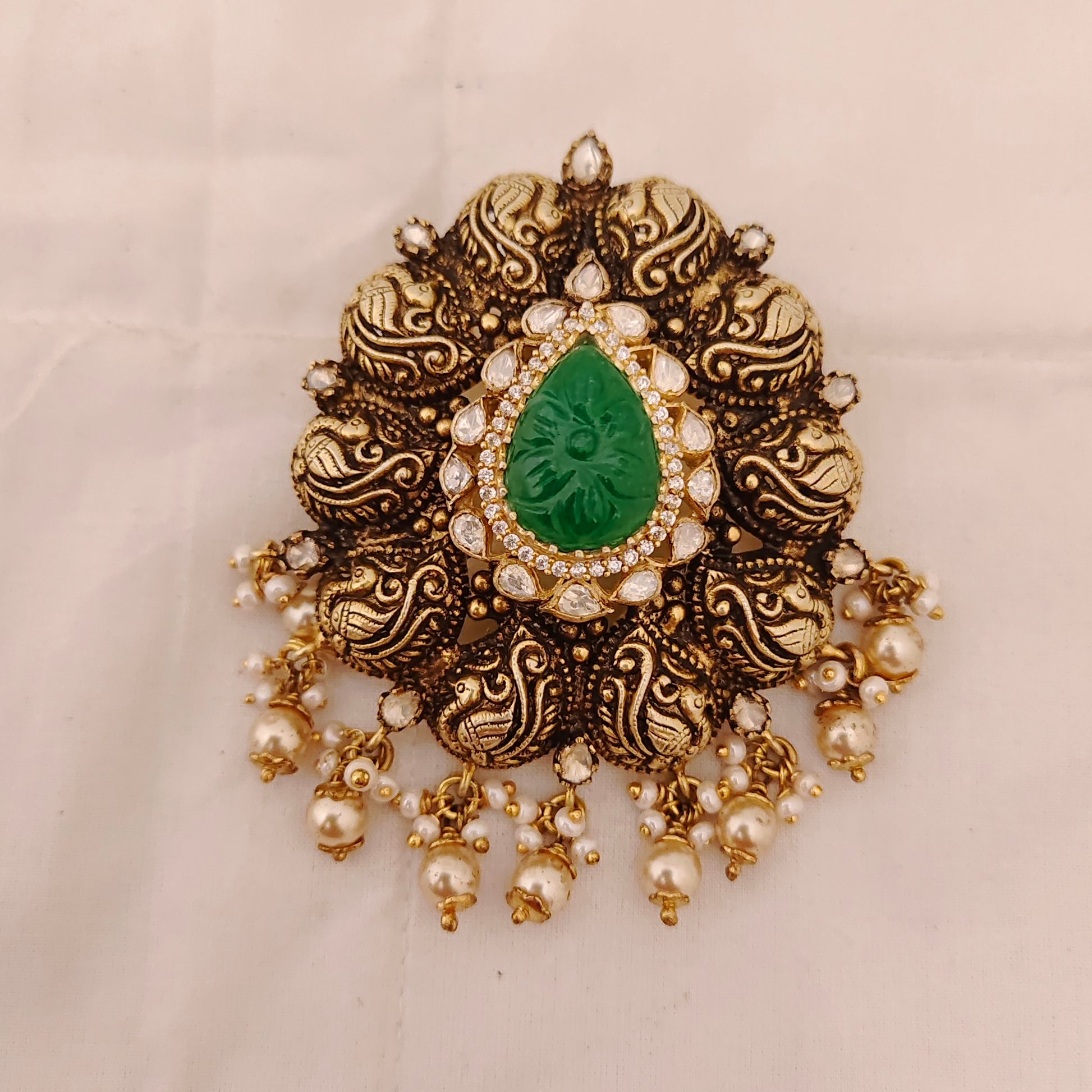 Silver base gold polish Cz stone locket design beautiful collection with 4 inches from Ramala Collection