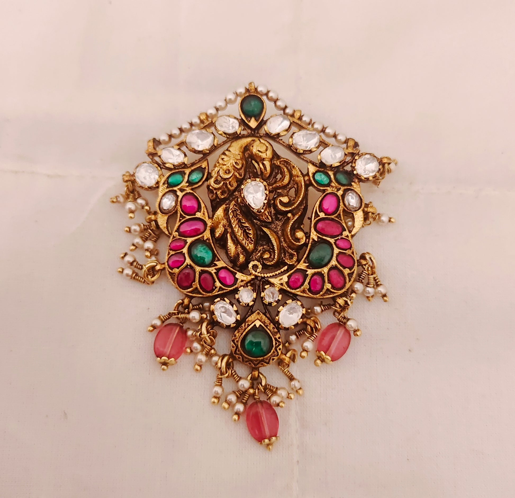 Silver base Cz gold polish locket design with 3 Inches From Ramala Collection