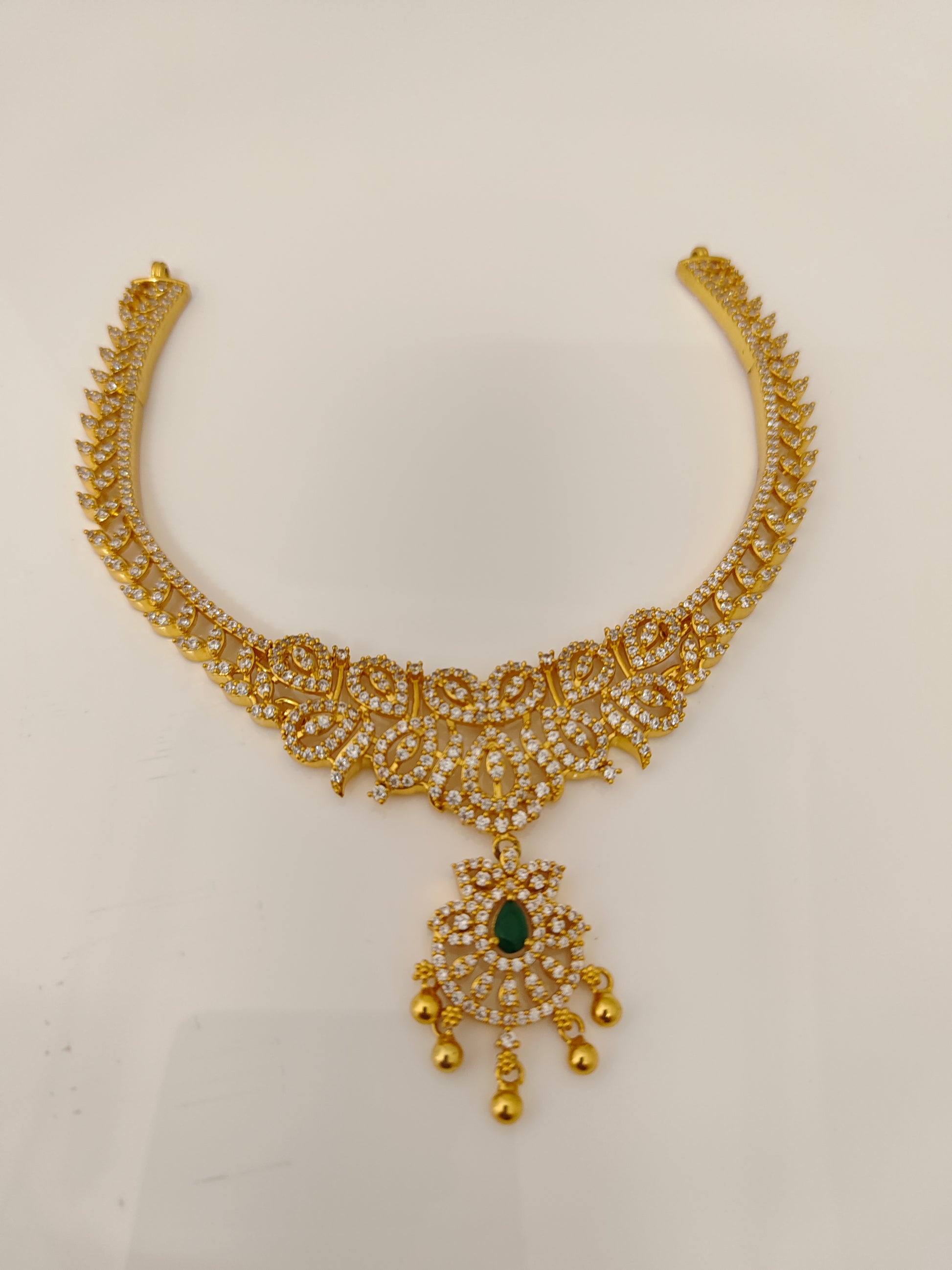 92.5 Silver base gold polish cz stone necklace set 5 inches length designed by Ramalacollections