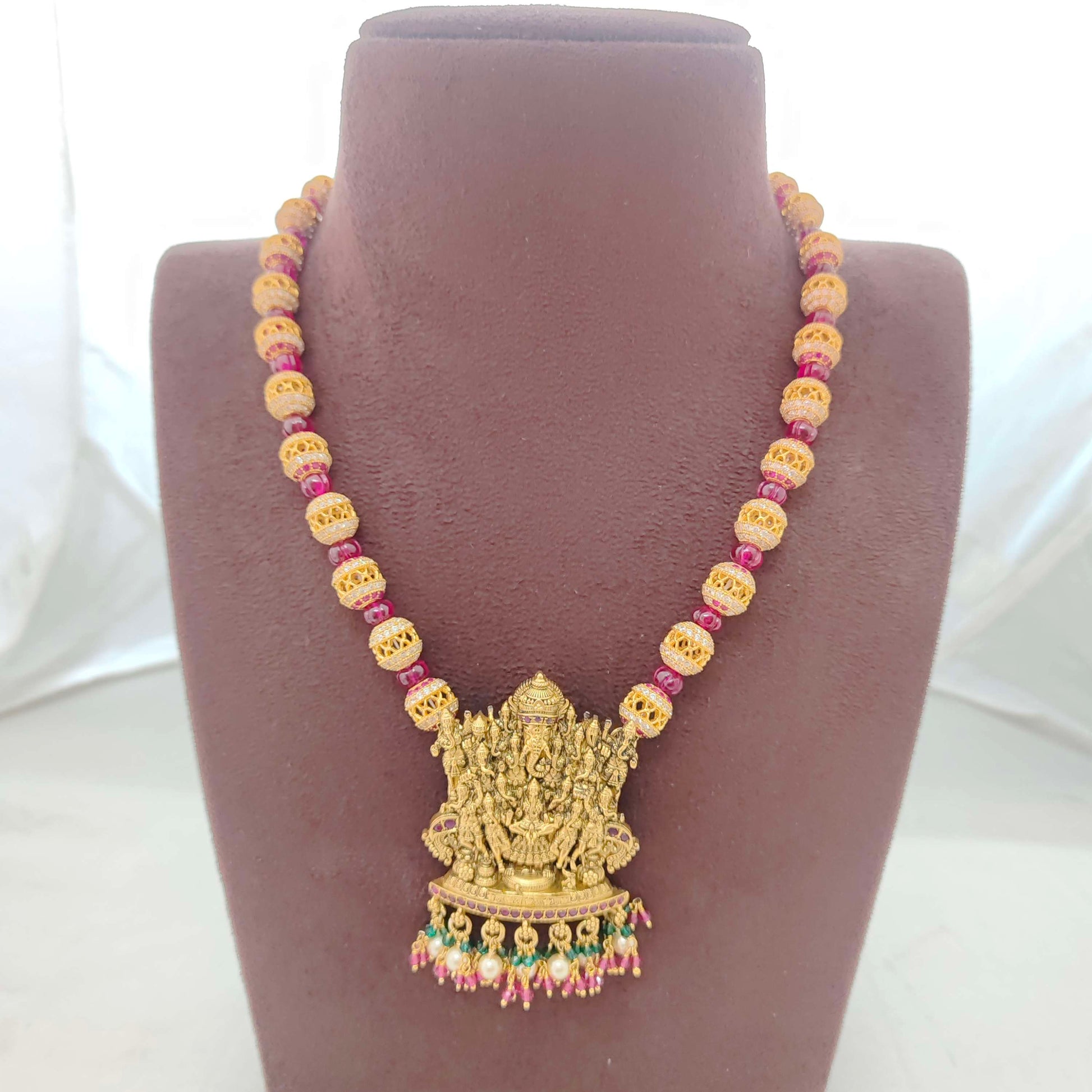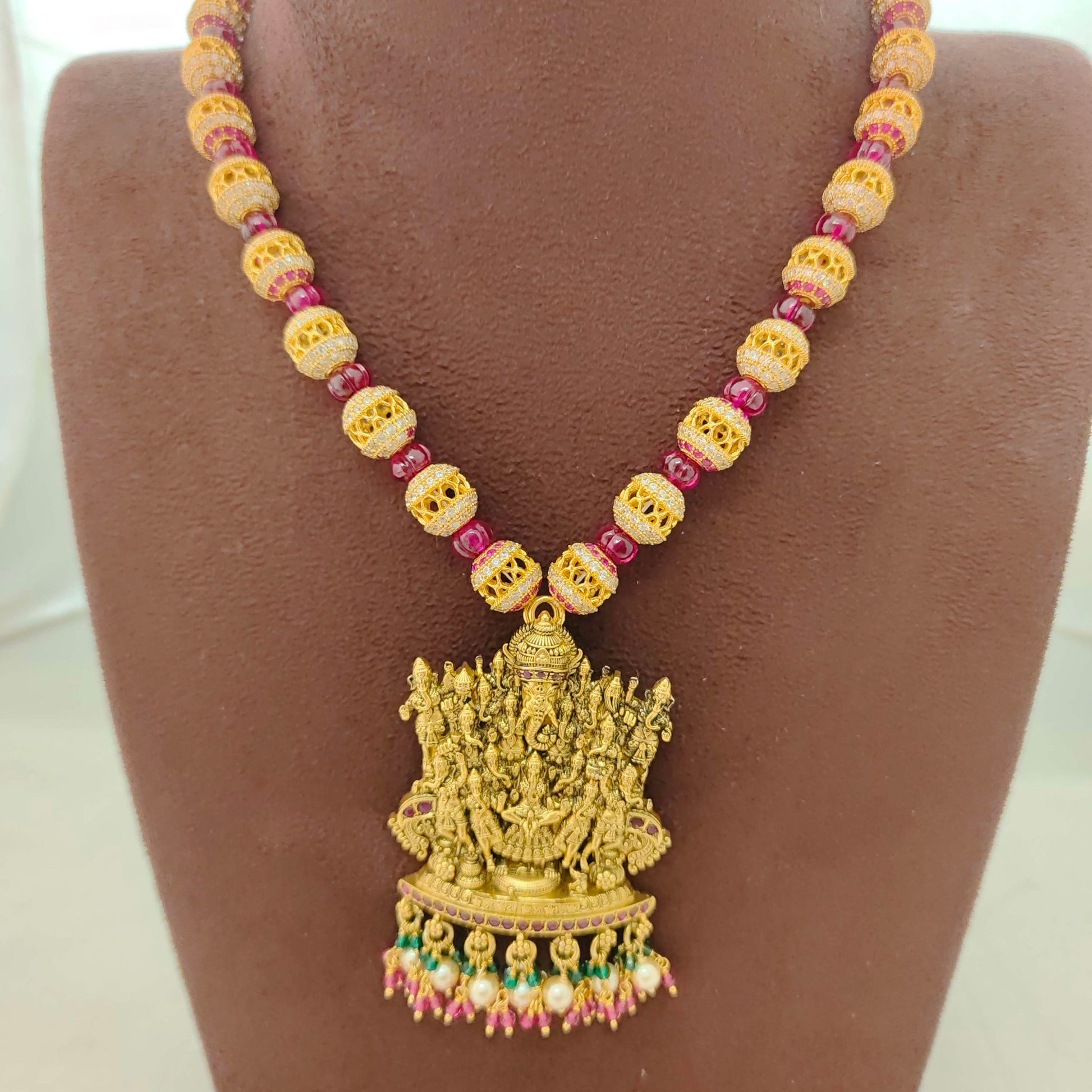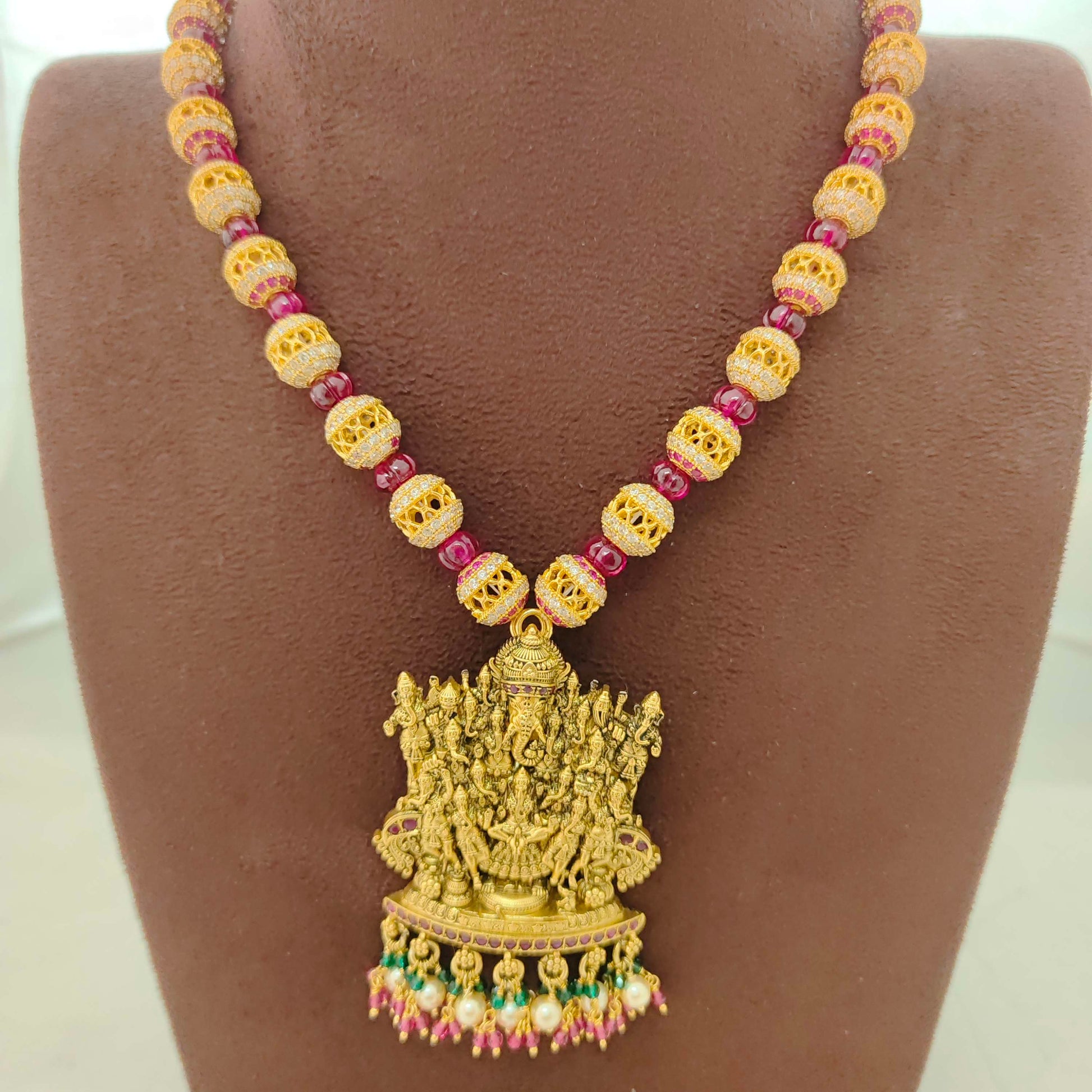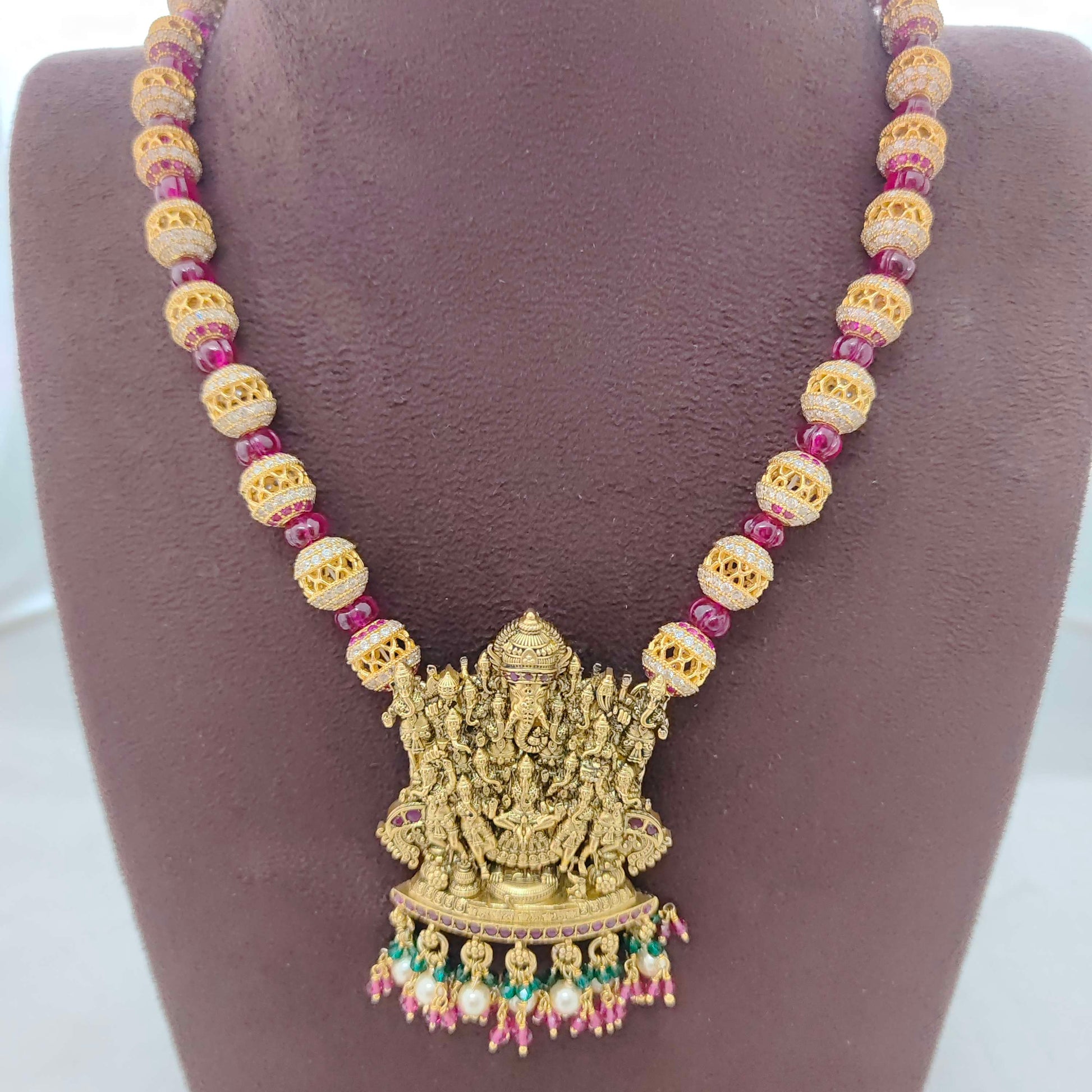 Silver base gold polish Cz stone balls chain 18 inches length design by ramalacollections