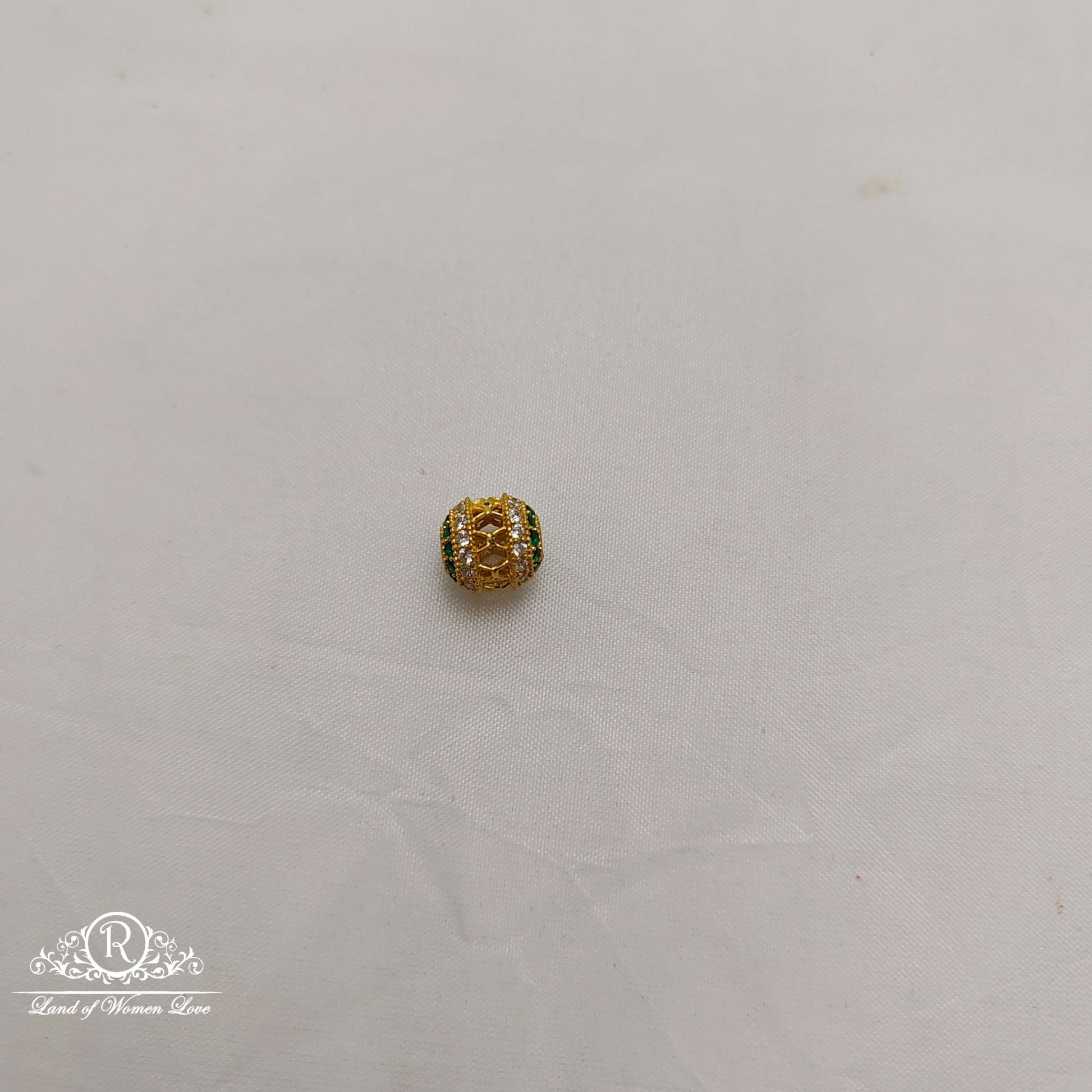 Silver base gold polish Cz stone balls 11*10 mm size balls white and green combination pumpkin model beads available design by Ramala Collections