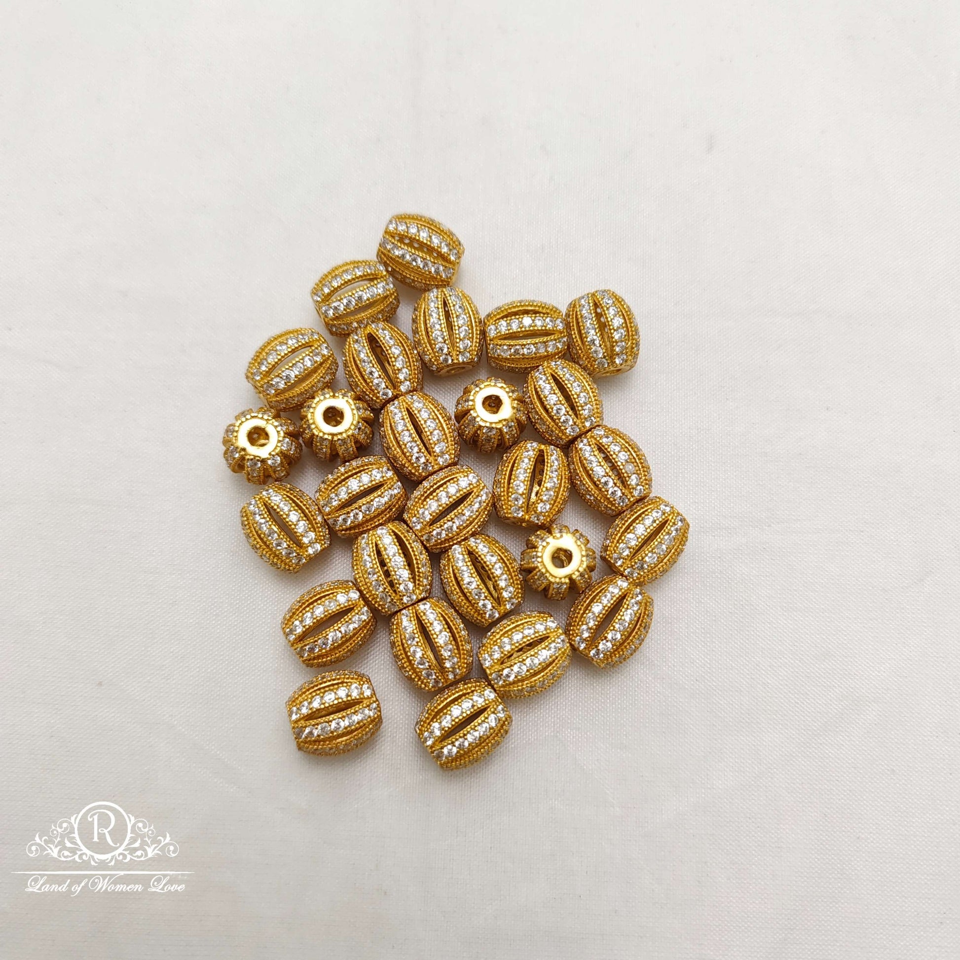 Silver base gold polish Cz stone balls 11*10 mm size balls white stone pumpkin model beads available design by Ramala Collections