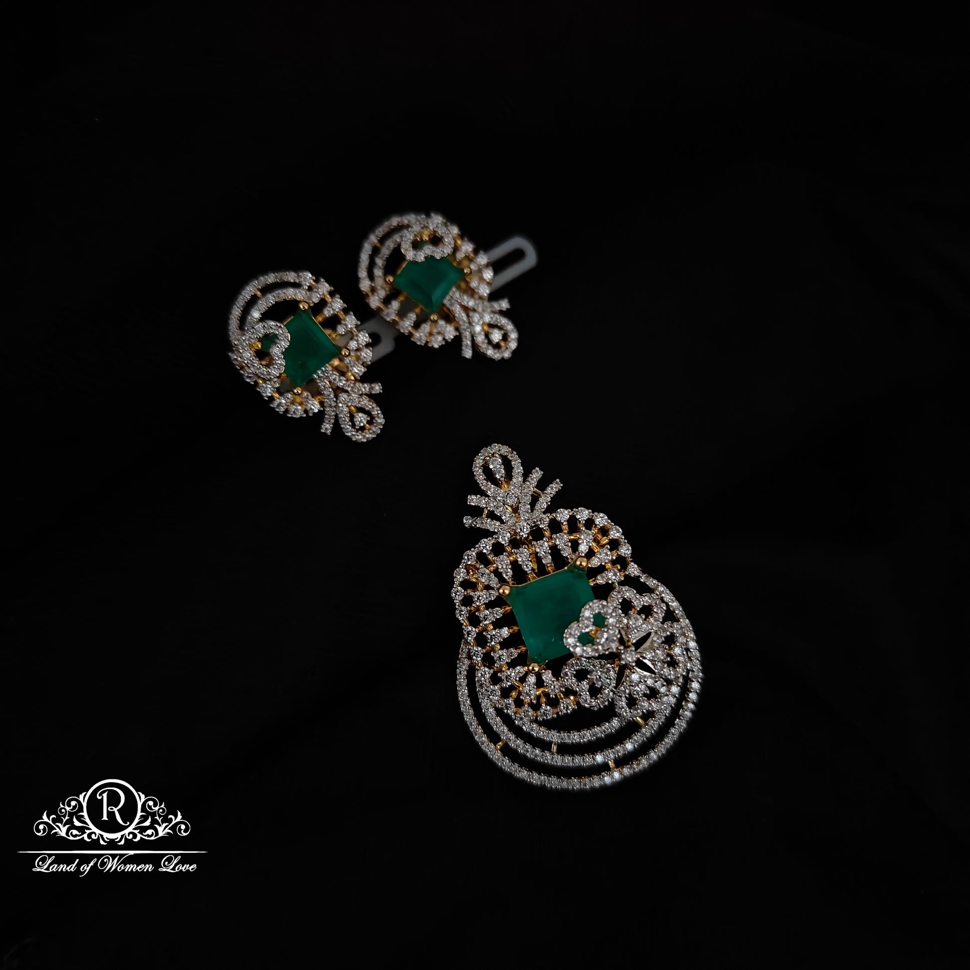 92.5 Silver with gold polish cz stone earrings center green stone matching pendant also available pendant cost extra design by ramalacollection