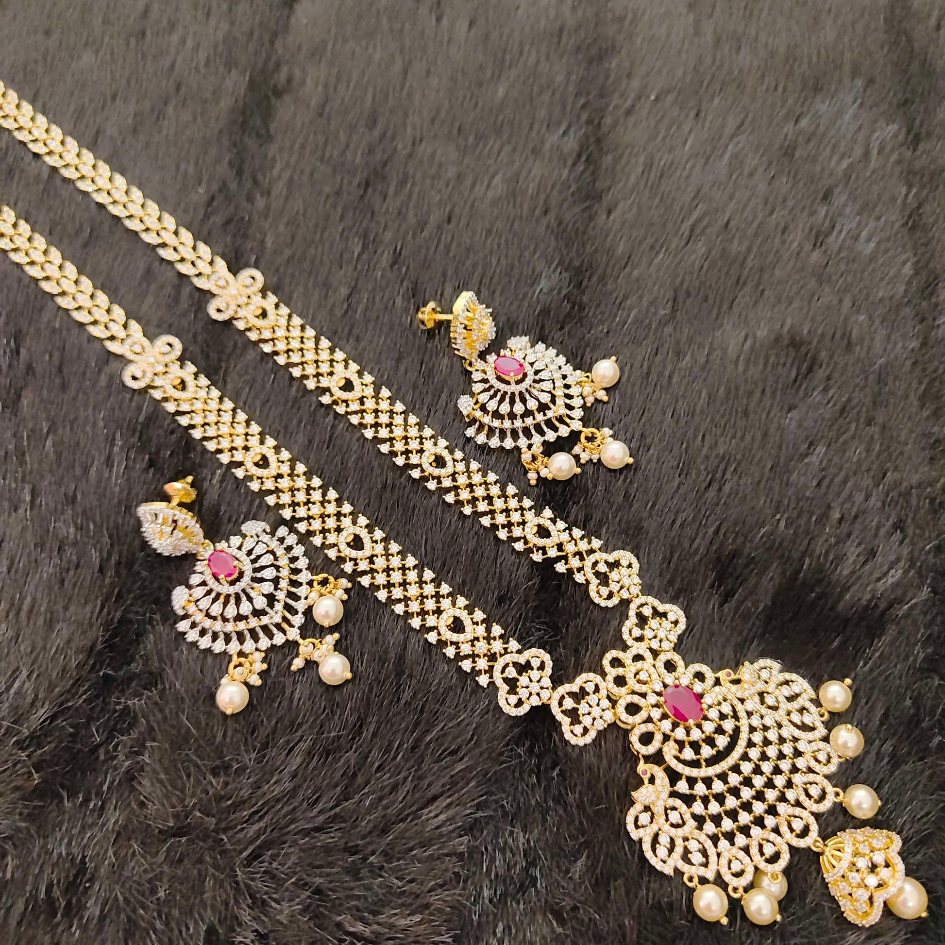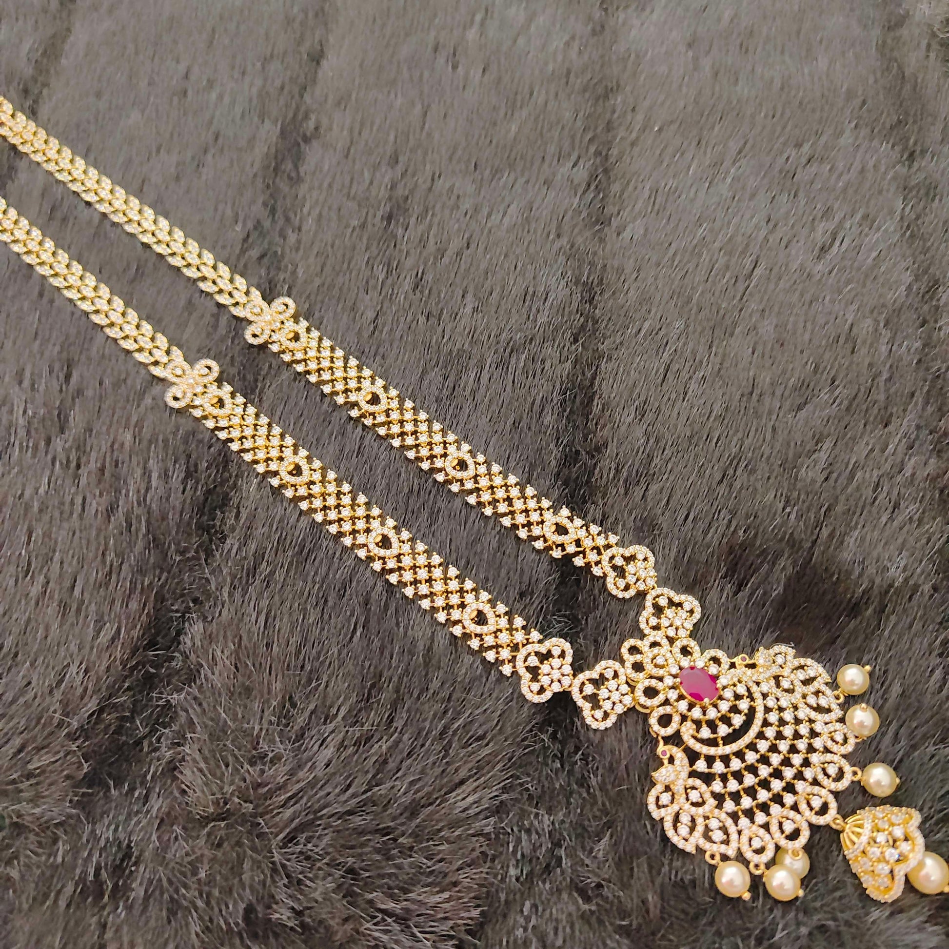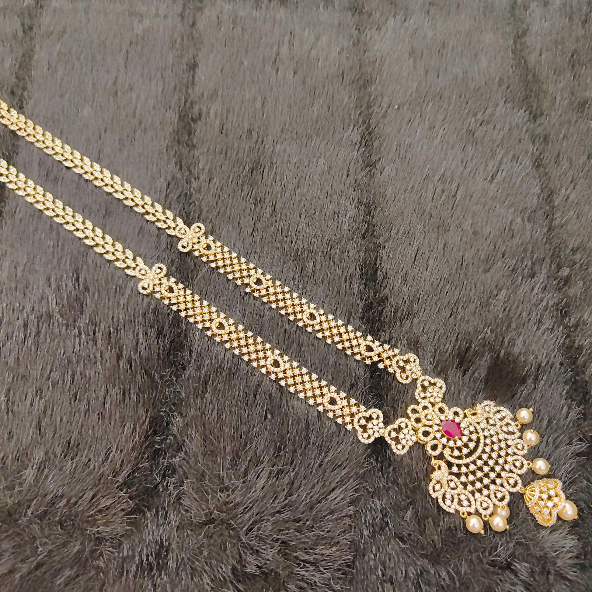 Silver base gold polish Cz stone haram design available 34 inches length design by ramalacollections
