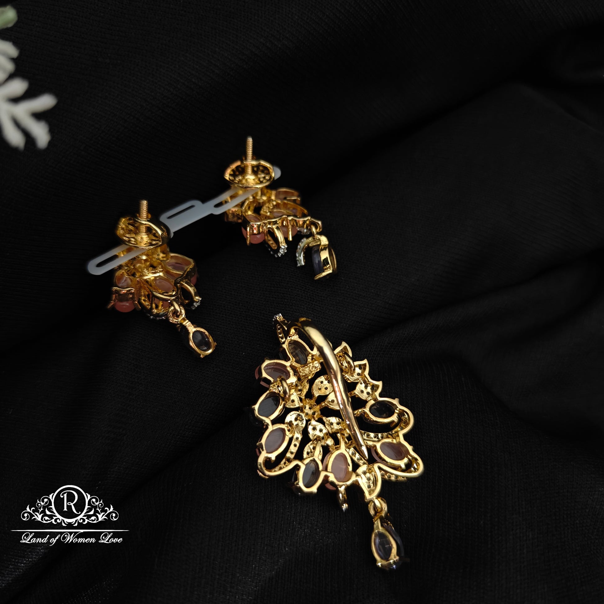 92.5 Silver with gold polish Radiant gold and silver floral jewelry set with sparkling white stones and a strikingmulti colour stones , perfect for elegant occasions. earrings cost extra design by ramalacollections