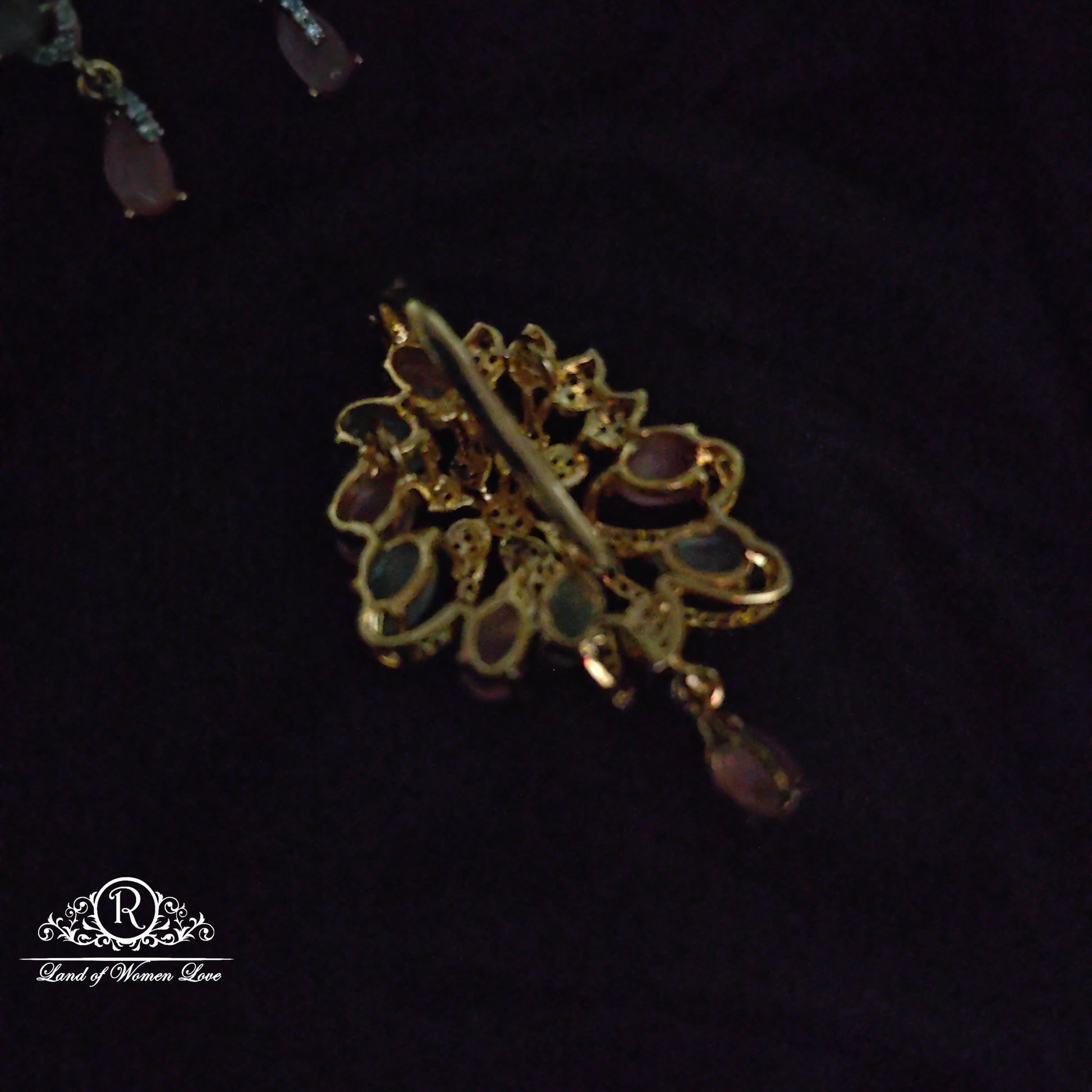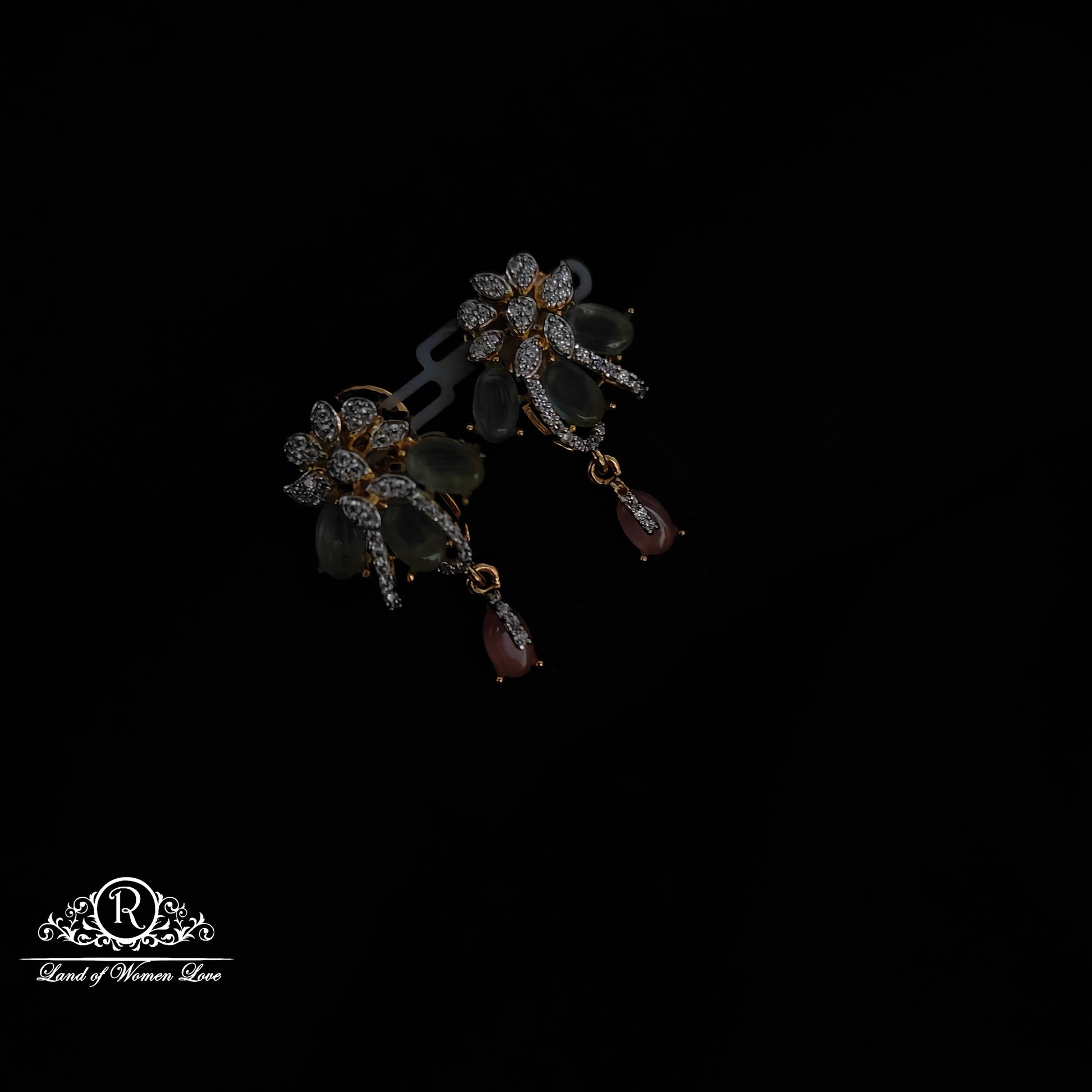 92.5 Silver with gold polish cz stone pendant elegant look diamond finshing multi colour beads design matching earrings also available cost extra pendant 0.7 inches length design by ramalacollections Note mentioned