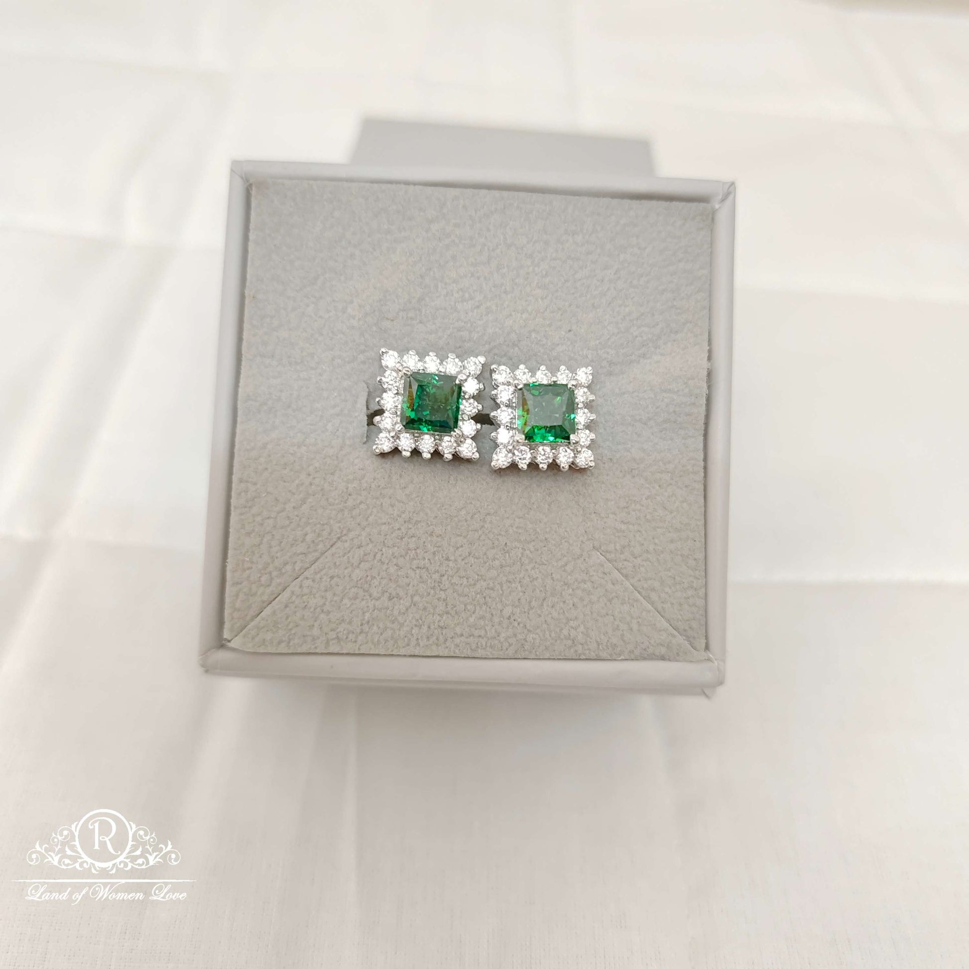 92.5 Silver Jewelry Beautiful Small Stud Earrings Designs With Cz White Stones Middle Green Stone With Backside Pushing Screw Model.From Ramala Collections