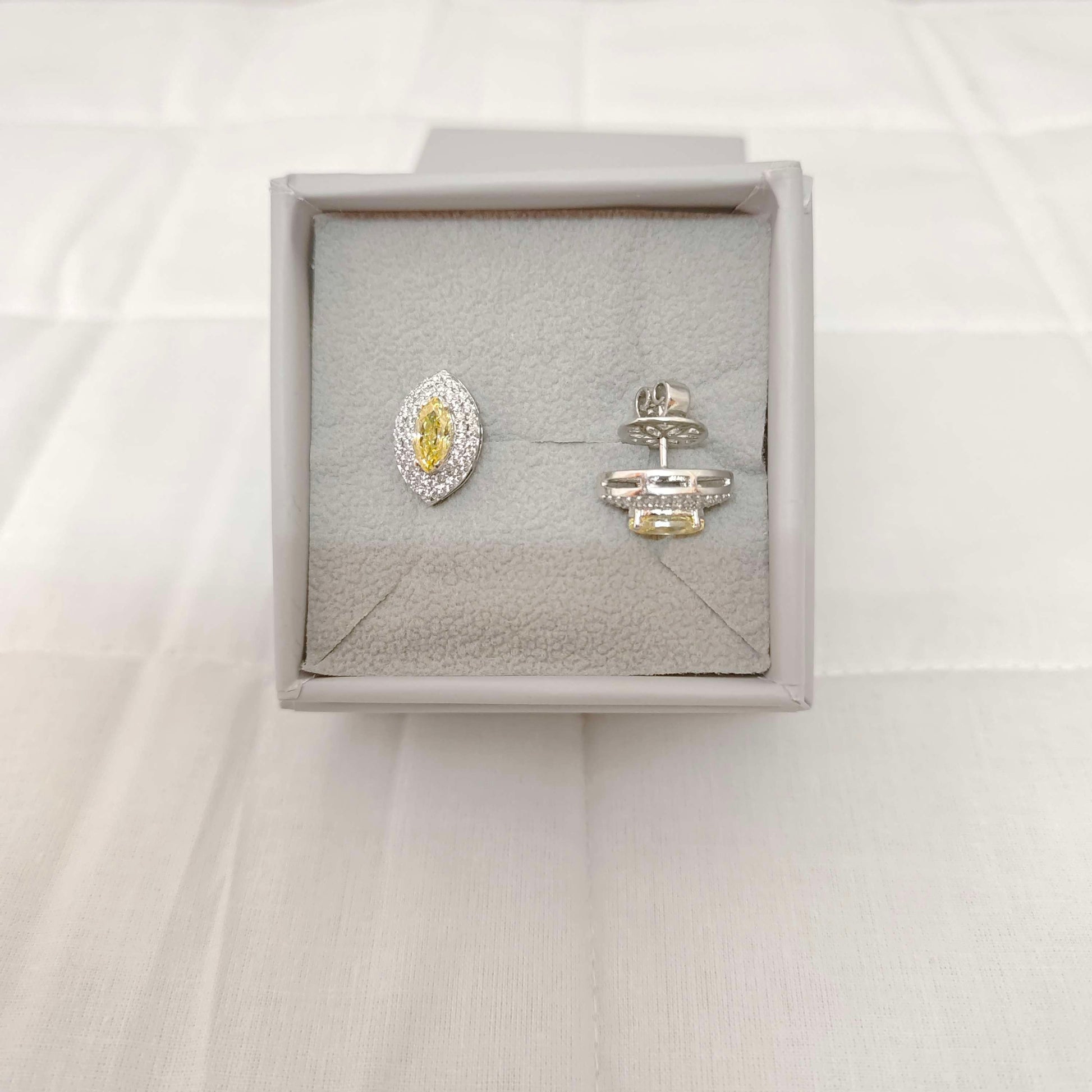 92.5 Silver Jewelry Beautiful Small Stud Earrings Designs With Cz White Stones Middle Yellow Stone With Backside Pushing Screw Model.From Ramala Collections