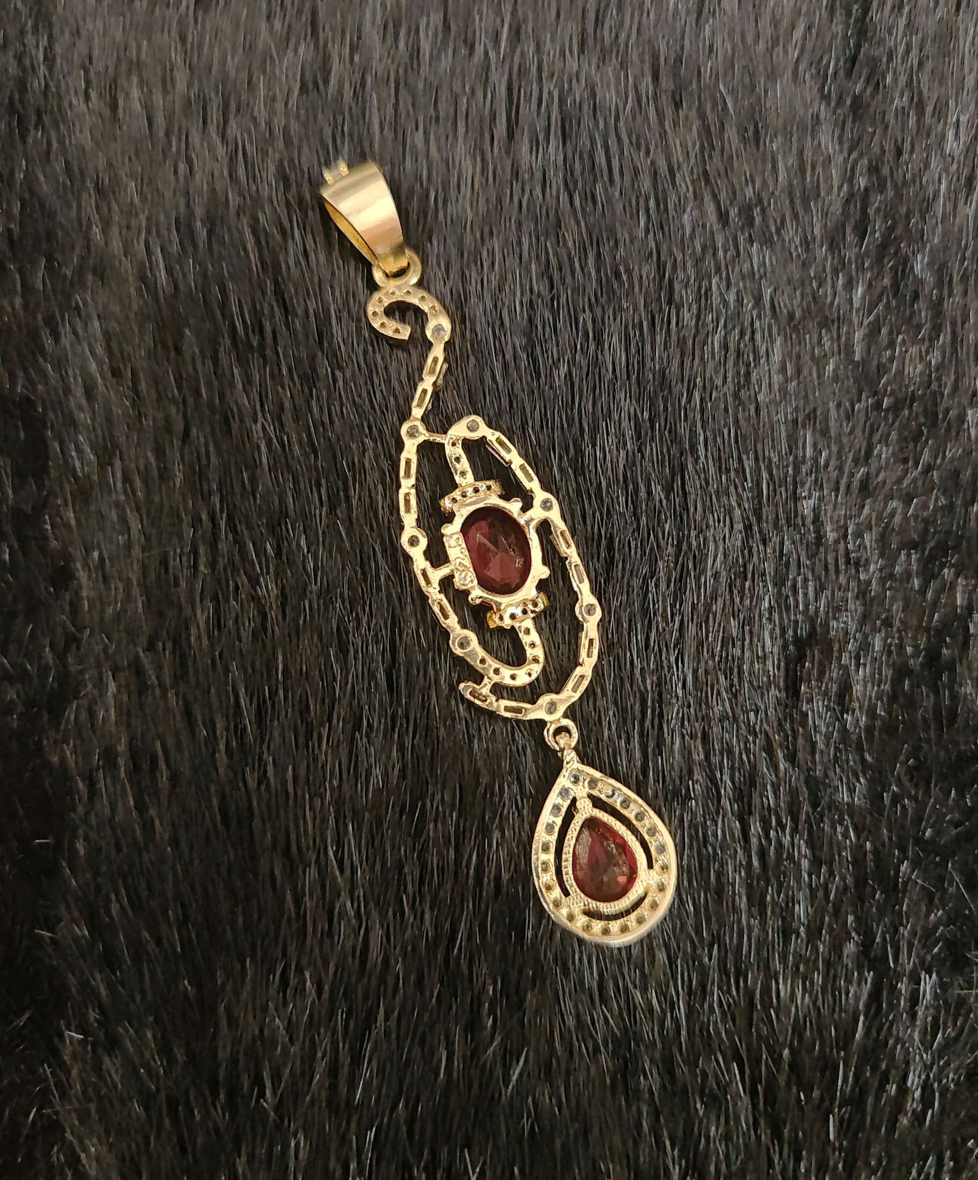 92.5 Silver Jewelry Beautiful Cz Locket Designs With 22k Gold Coating With White Stones Middle Red Stones With 2.7" Inches .From Ramalacollections