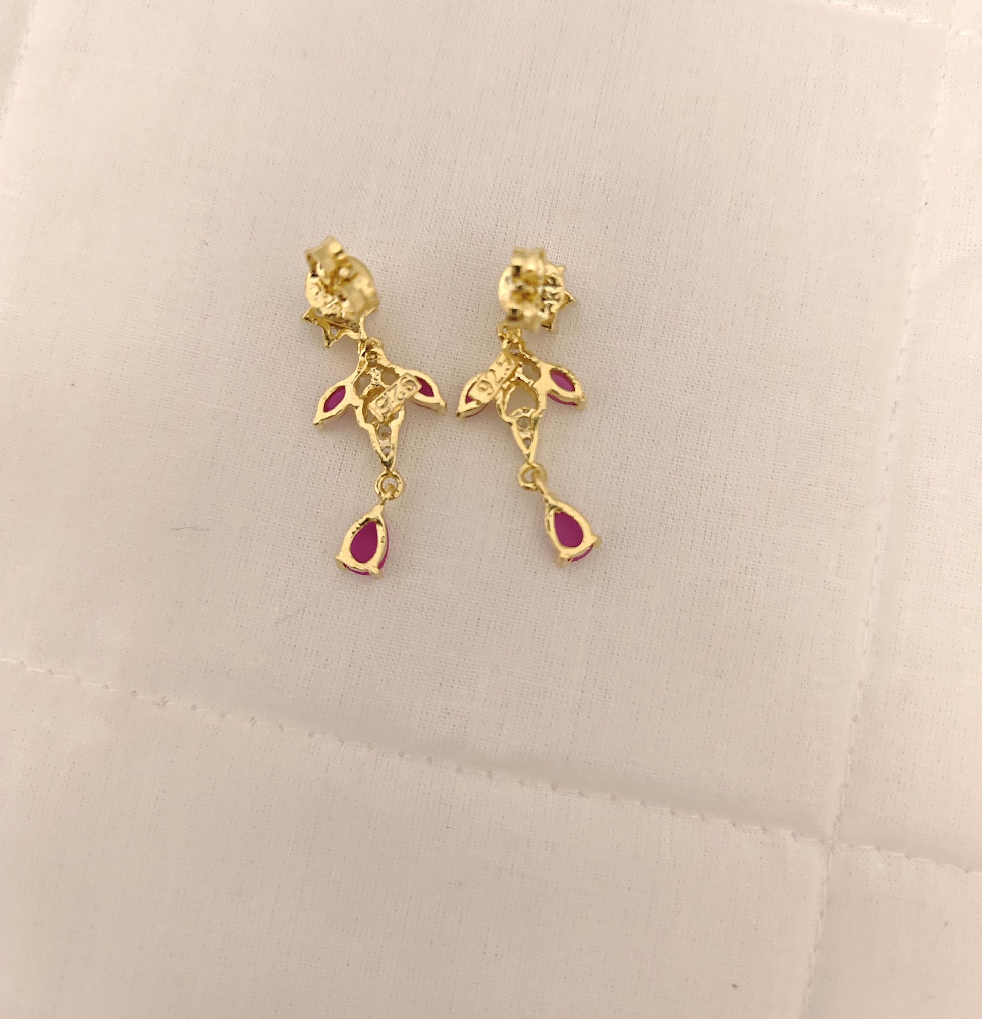 92.5 Silver Jewelry Beautiful Cz Stones With Necklace With Matching Earrings Designs With Screw Type With 22k Gold Coating With White Stones Middle Kempu Stones With 18" Inches .From Ramalacollections
