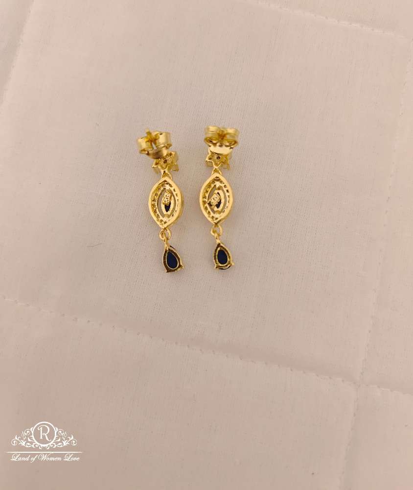 92.5 Silver Jewelry Beautiful Cz Stones With Necklace With Matching Earrings Designs With Screw Type With 22k Gold Coating With White Stones Middle Blue Stones With 18" Inches .From Ramalacollections