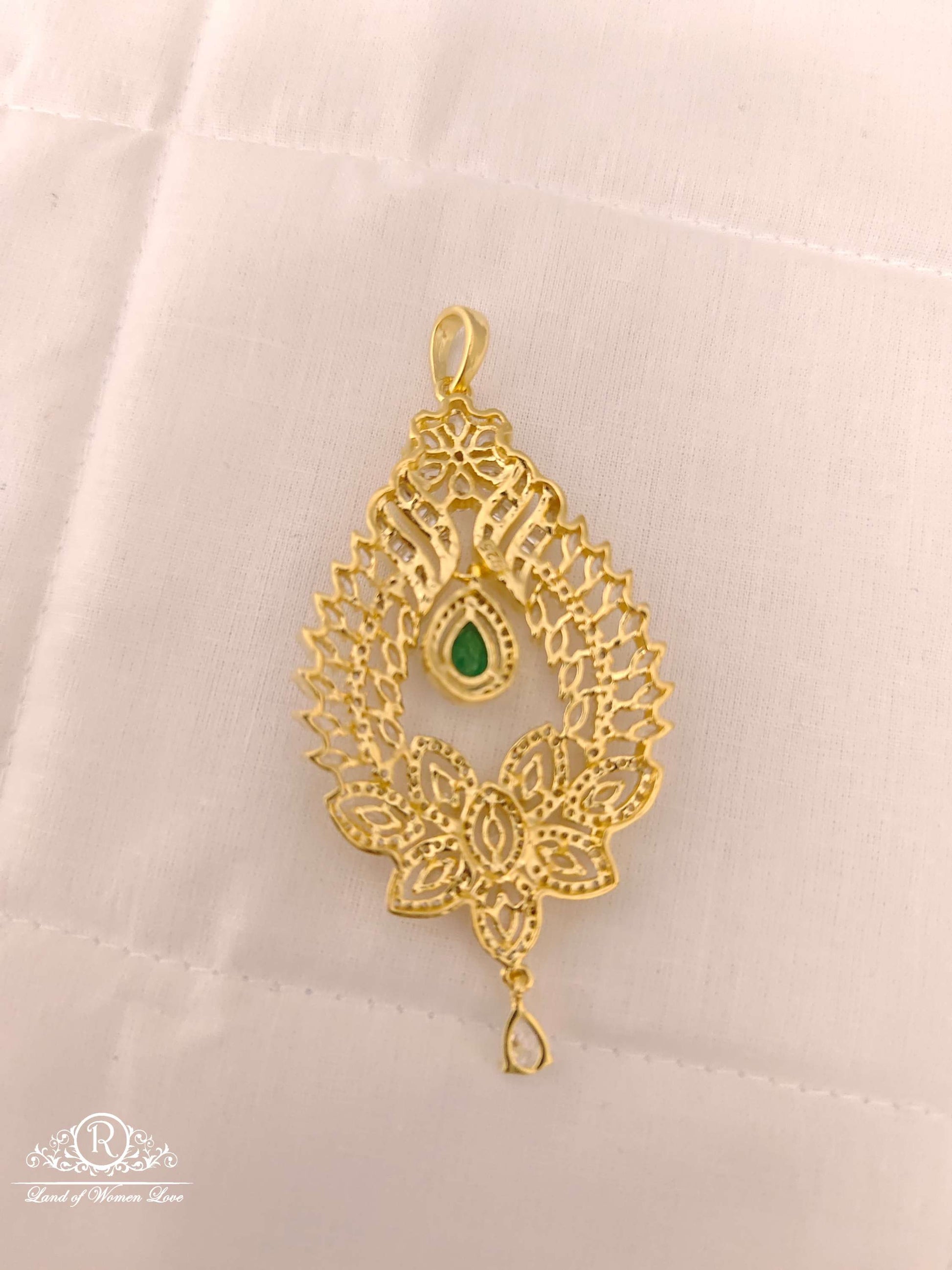 92.5 Silver Jewelry Beautiful Cz Locket Matching Earrings Flower Designs With 22k Gold Coating With White Stones Middle Kempu Stone With 2.5" Inches.From Ramalacollections