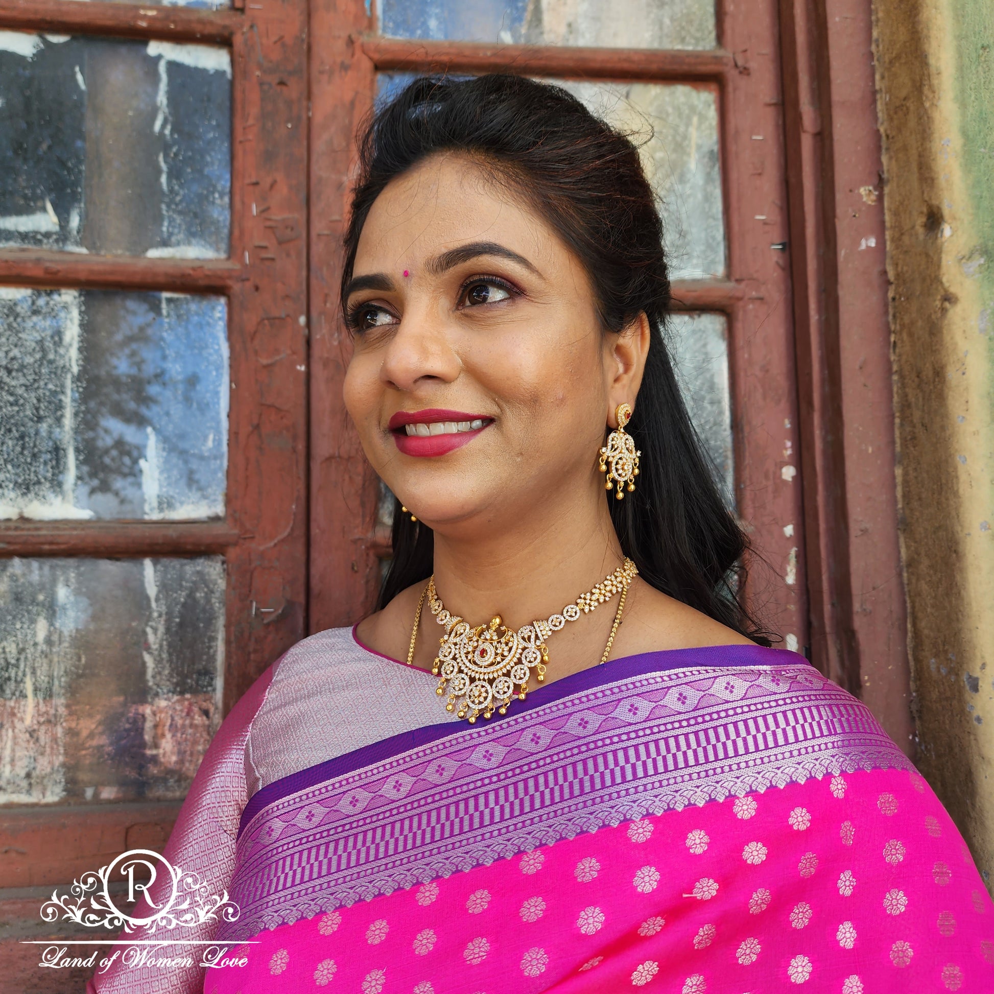 92.5 Silver Jewelry Beautiful Cz White Stones Necklace Designs With 22k Gold Coating With Middle Kempu stones hanging Silver Gold Balls design With 13" inches From Ramalacollections